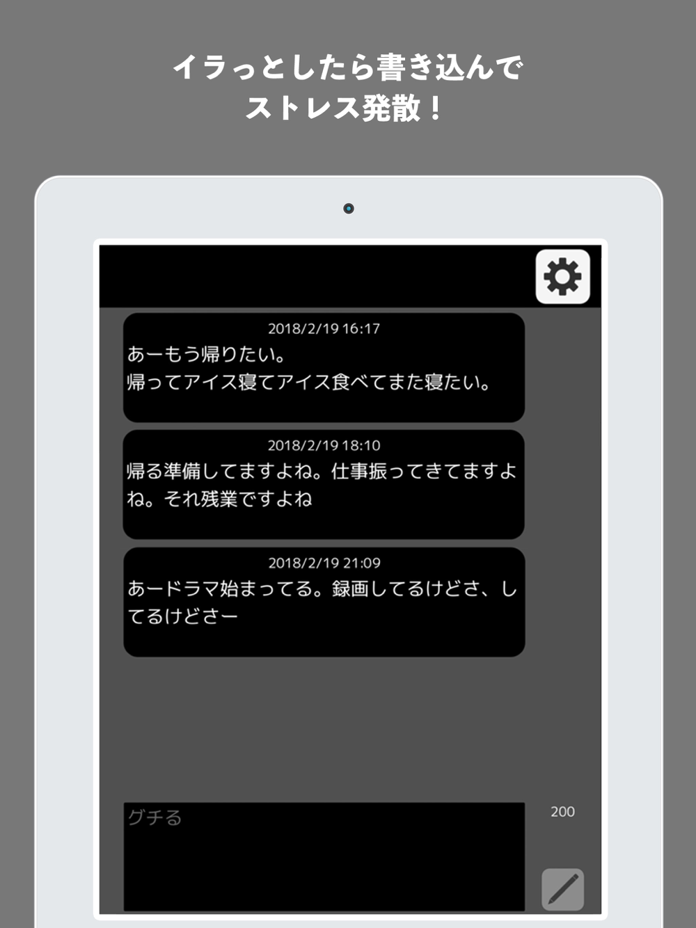 「愚痴フリー」は、日頃から溜まっている不平不満を書き込み、一気に浄化することで気持ちをスッキリさせるアプリです。