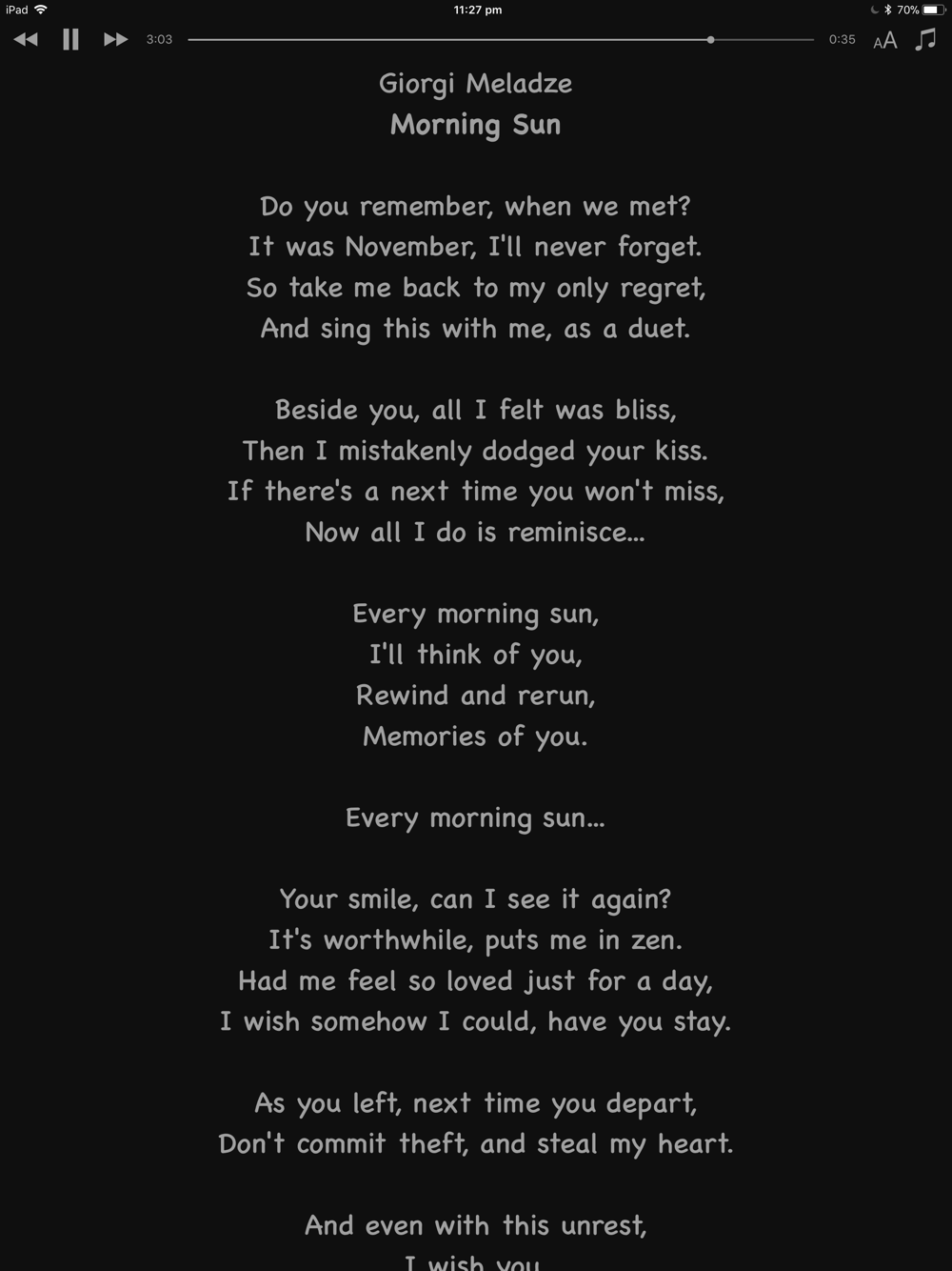 This is version 3 of the popular Lyrics View app. It has been fully rewritten from scratch to support all modern iOS devices. It is used by professional and karaoke singers around the world. The clean and minimal interface lets you focus on the song lyrics played by the iOS music app.