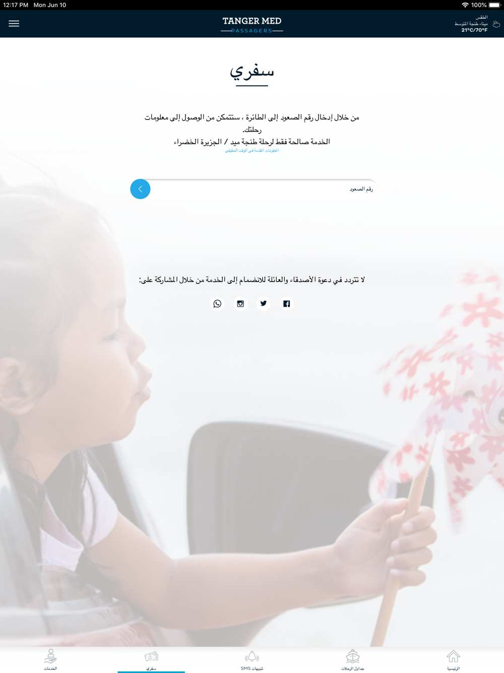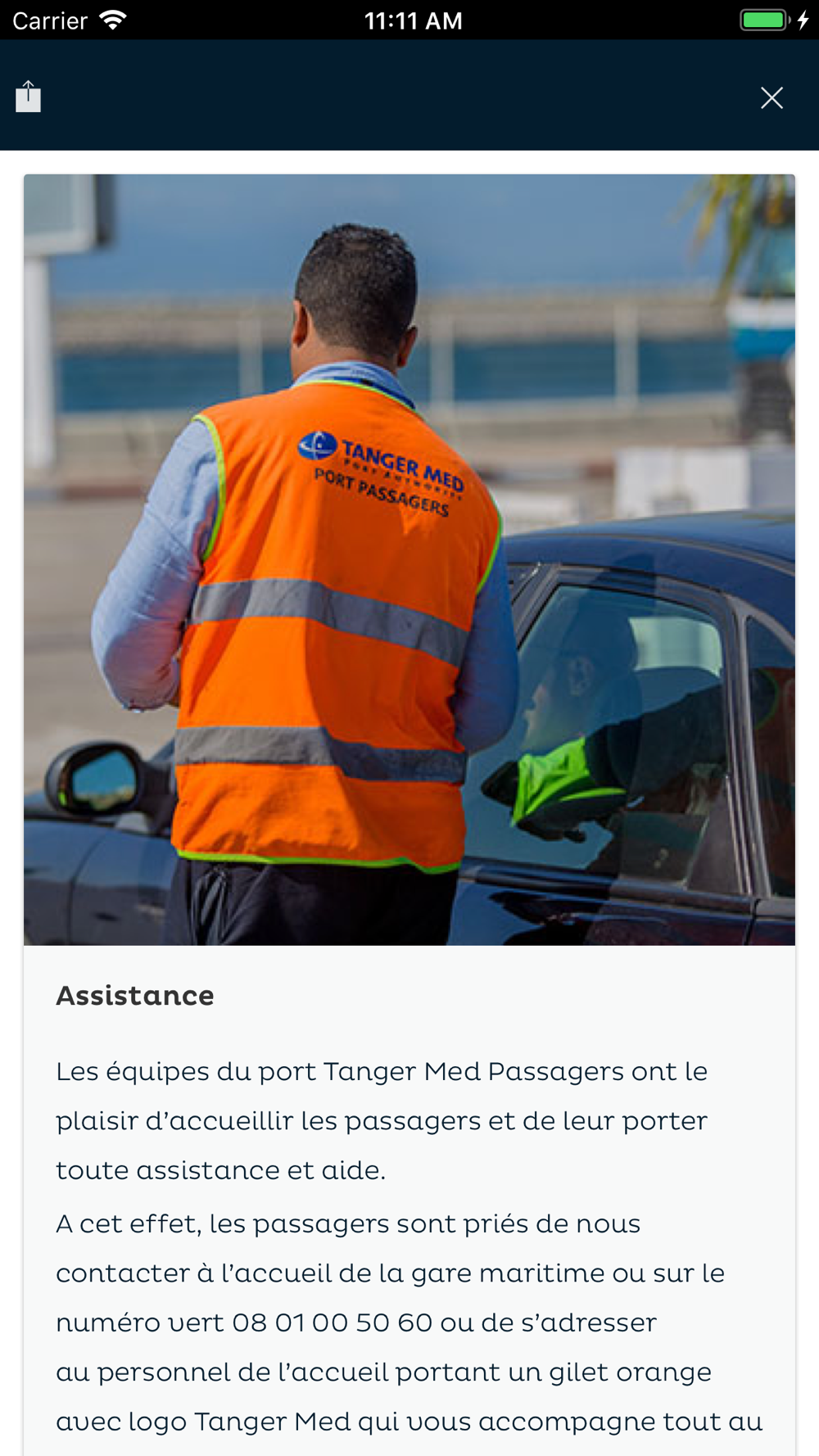 The mobile application "Tanger Med Passengers" is first and foremost a guide dedicated to accompany passengers throughout their crossings, starting from the preparation of the trip until the destination. Through regular updates, passengers will have access to useful and real-time information such as boat departures, arrival schedules, access plans, procedures and traffic forecasts ... etc.