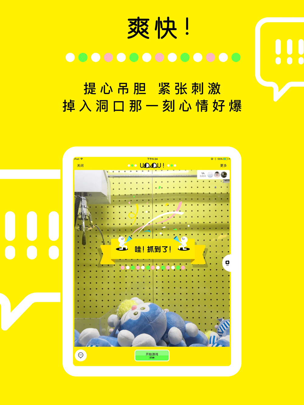 如果你是娃娃机大神,那么一定要来接受众人的膜拜!多人在线围观加上弹幕模式,让你的娃娃机之魂熊熊燃烧吧!