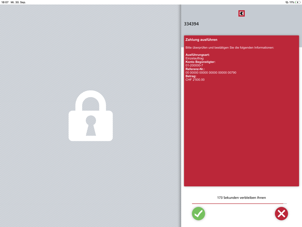 - Sie erhalten über die "BEKB smartLogin"-App eine Aufforderung, die Anmeldung in das E-Banking zu bestätigen