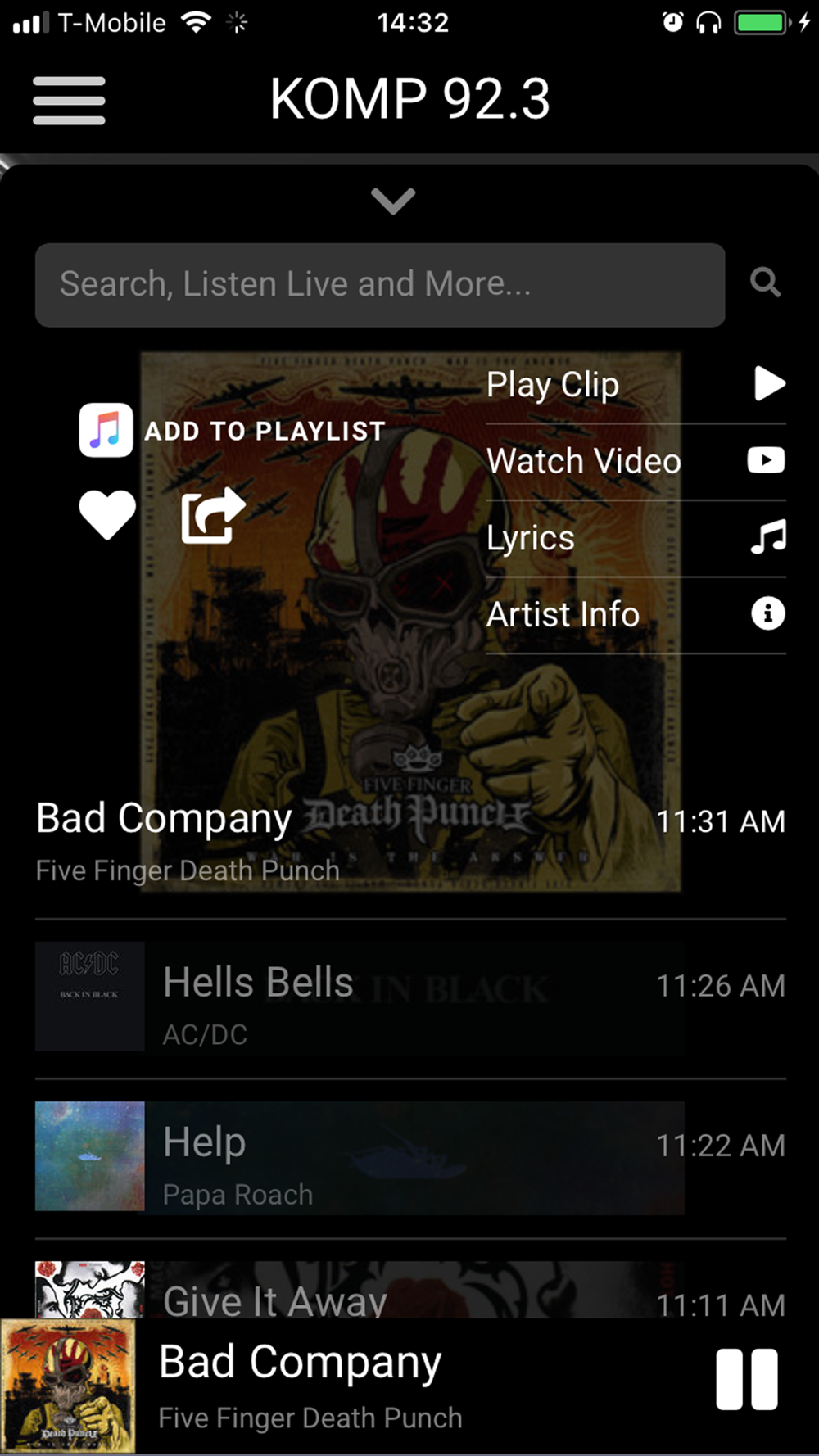 -Use KOMP 92.3 app to help you DISCOVER MUSIC. See the current song played and the history of all the songs we played.