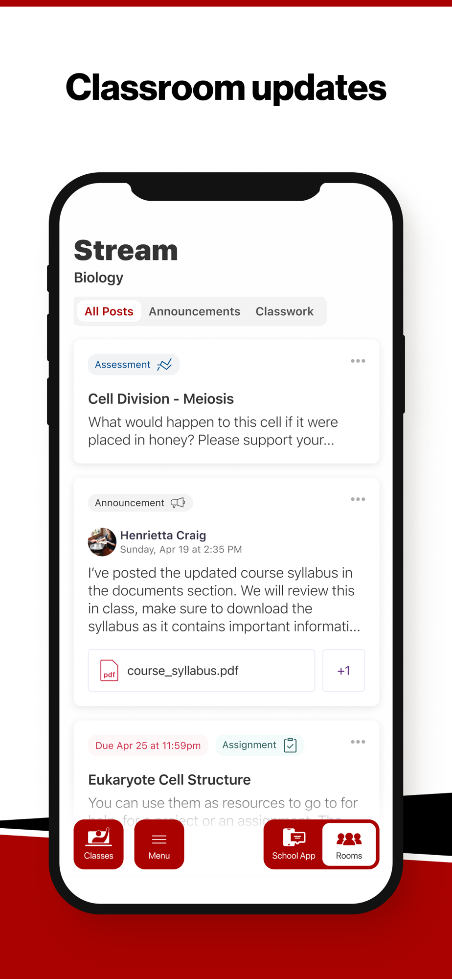 Select your student’s organization within the app and make sure you never miss a message.