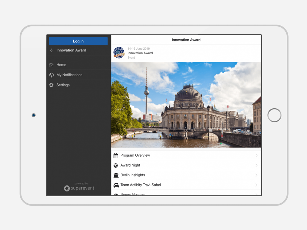 The Innovation Award App provides the event program in detail as well as all logistical information for the participants of the Innovation Award Weekend Event.