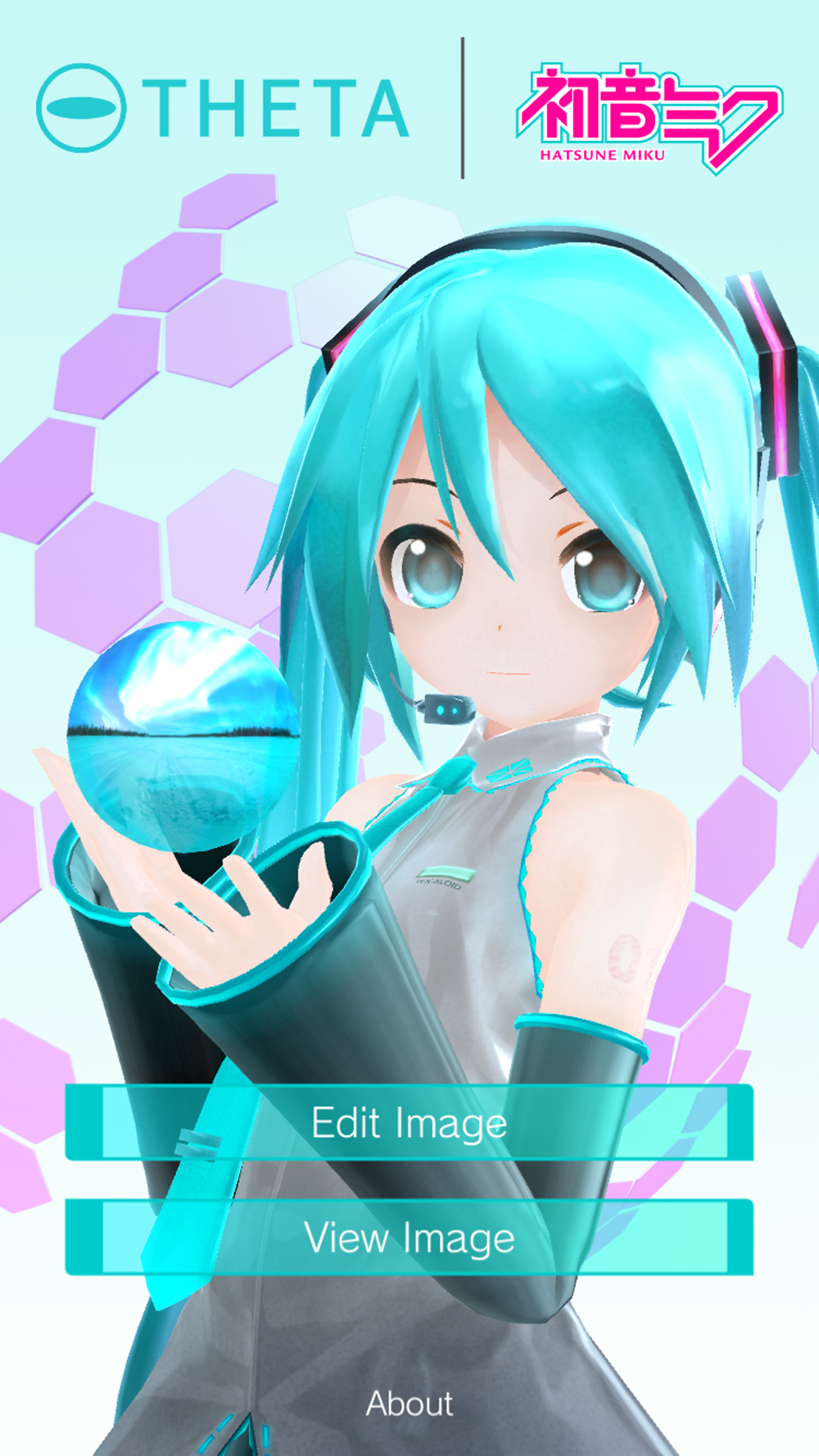 This is a dedicated app developed for the limited model "RICOH THETA SC Type HATSUNE MIKU" in collaboration between the 360 degree spherical camera "RICOH THETA" and "Hatsune Miku", the electronic diva, to celebrate the 10th anniversary of "Hatsune Miku".