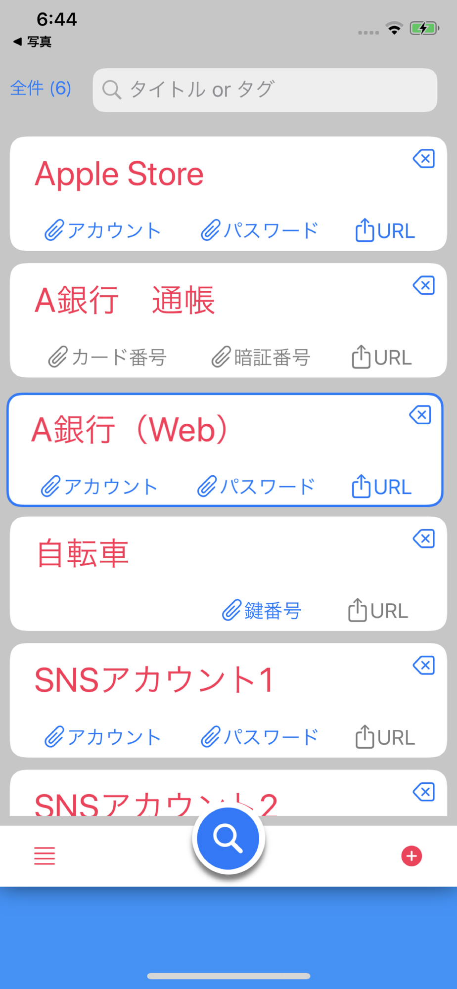 このアプリ一つで色々なパスワードをメモして記録しておくことが出来きます。