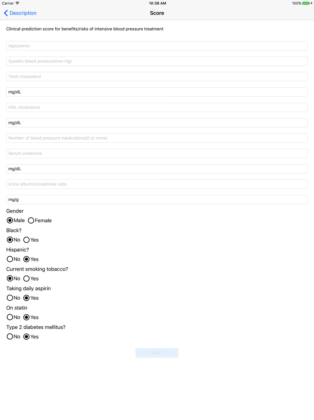 The purpose of this app is to individualise the intensification of blood pressure management. To do this the app uses individual patient data from two large clinical trials, SPRINT and ACCORD. The SPRINT trial randomised patients to either a systolic blood-pressure target of less than 120 mm Hg (intensive treatment) or a target of less than 140 mm Hg (standard treatment). By comparing the profile of your patient to profiles of patients in these studies treatment can be optimised to balance benefit versus risk of antihypertensive treatment intensification.