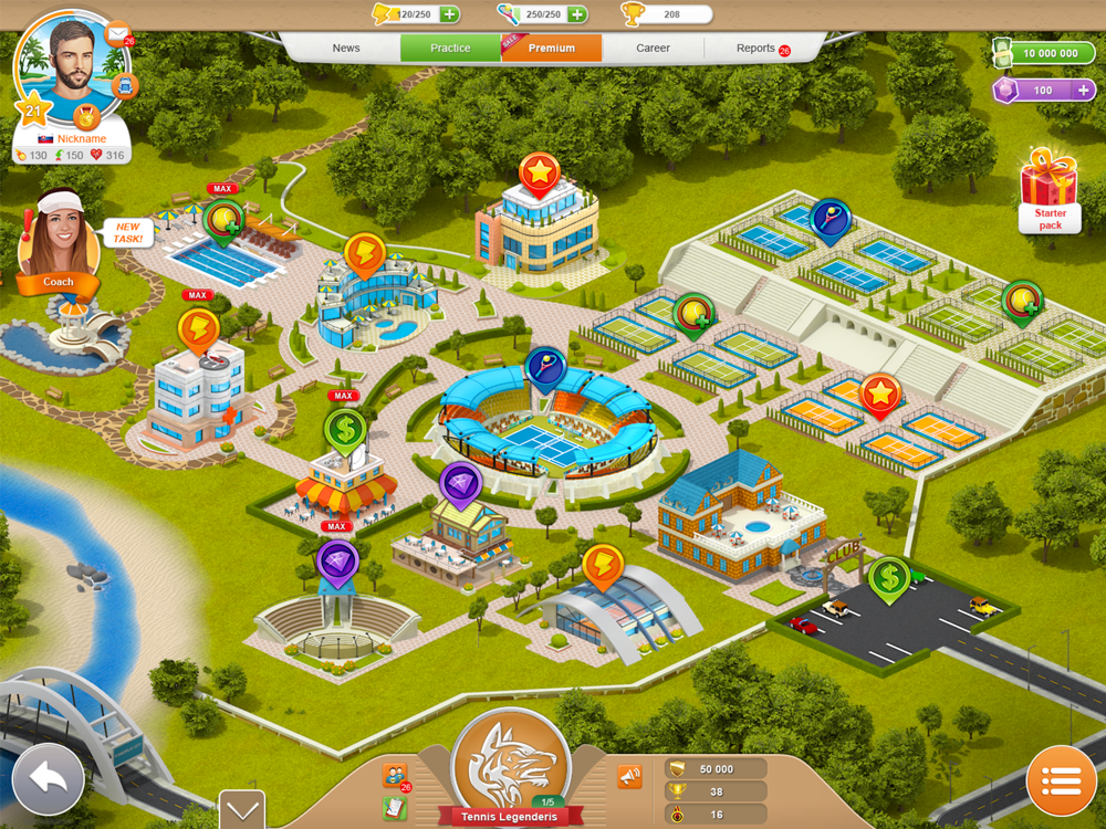 Advance through levels, unlock new facilities, train up your attributes, collect more powerful equipment… with all that, you will become a renowned tennis star in no time. Attend tournaments all over the world including the majors in Australia, France, England and the US for the ultimate challenge.