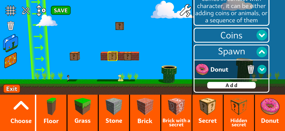 Have you wanted to complete a level consisting of only coins or create the most complex location in the world for a long time? All this you can do in the game SuperM.Go now! Create your own unique levels for the game, share them with friends and have fun!