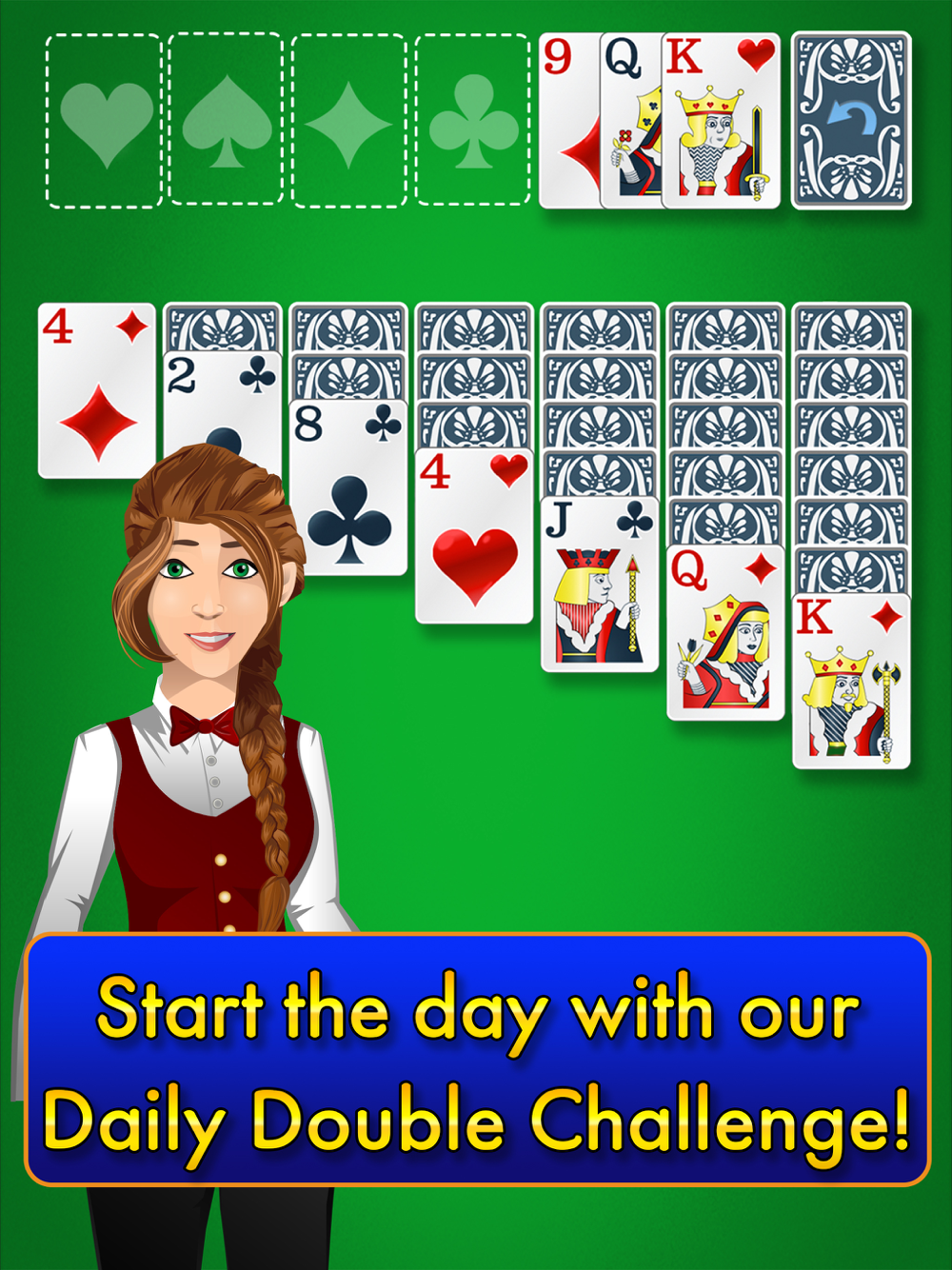 Enjoy the gold standard for solitaire card games with Solitaire Classic Gold. It's perfect for a quiet moment, to get your brain started in the morning or a relaxing activity to pass the time. Our take on this classic game also includes our Daily Double Challenge, the only solitaire challenge where you must win two rounds so you can start your day like a champion!