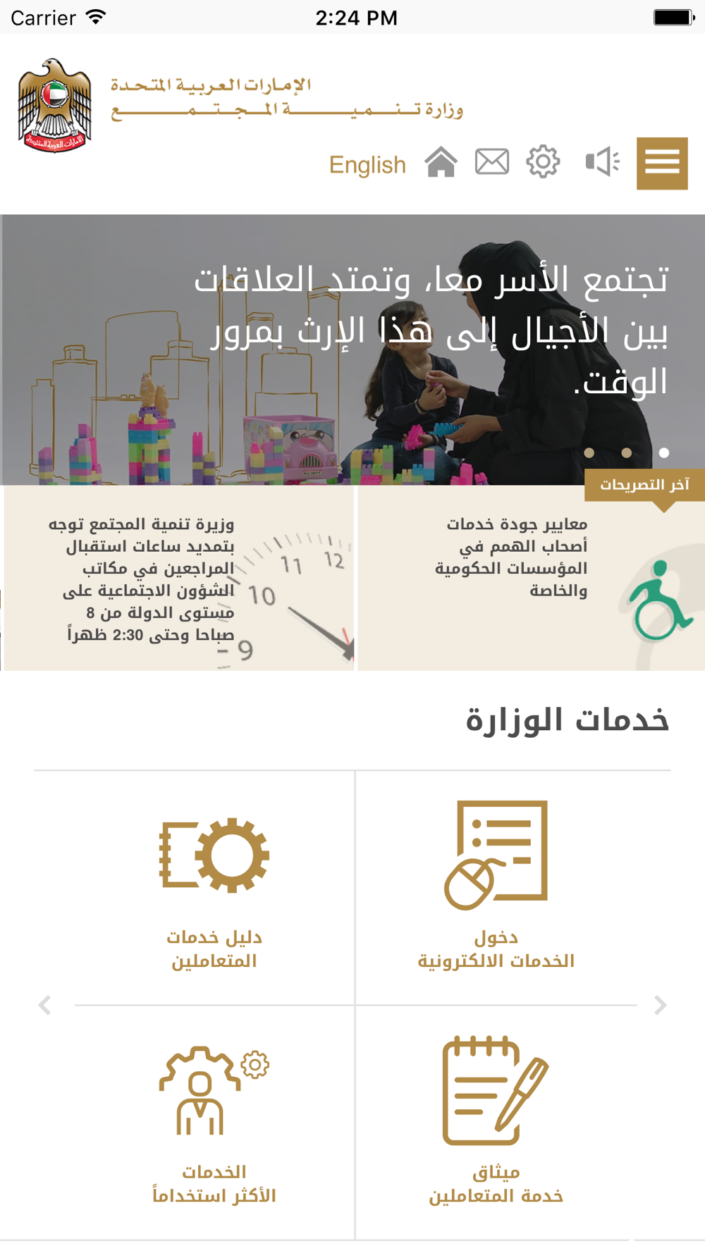 • FAQs, contain list of FAQs that covers all the main departments in ministry of community development. The user can filter the FAQs based on the category.