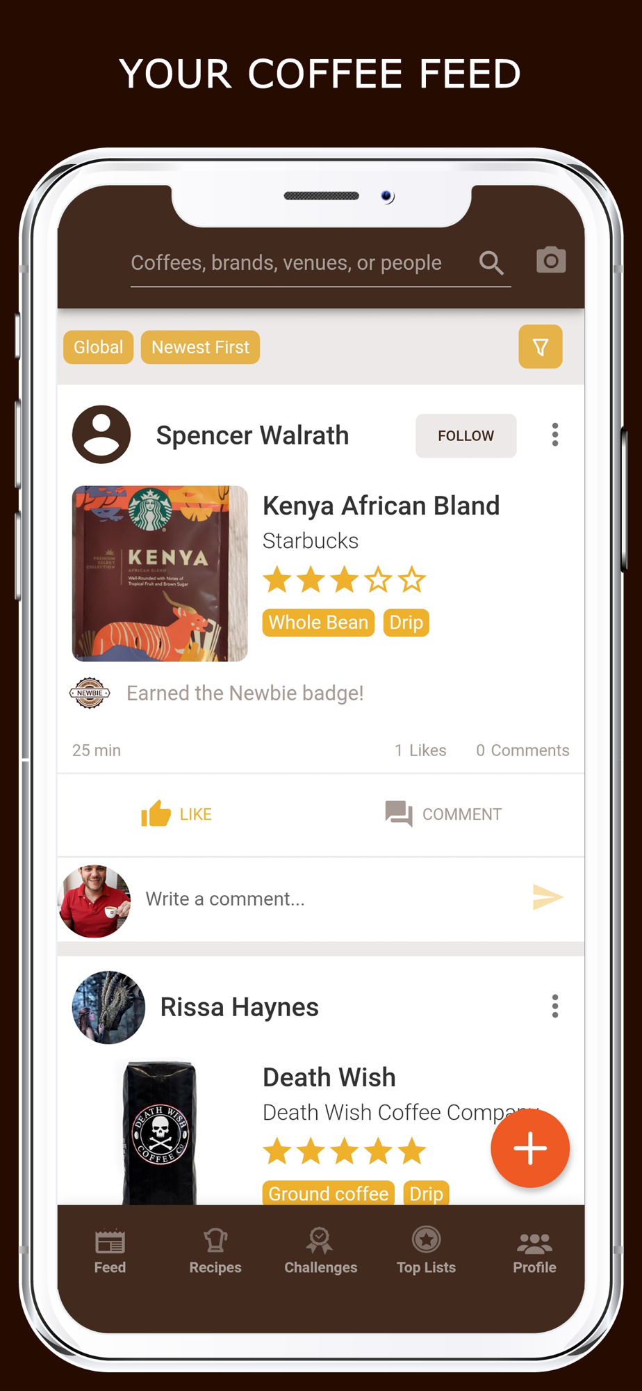 * Follow your friends to see what they are drinking and see how they rate & review other coffees.