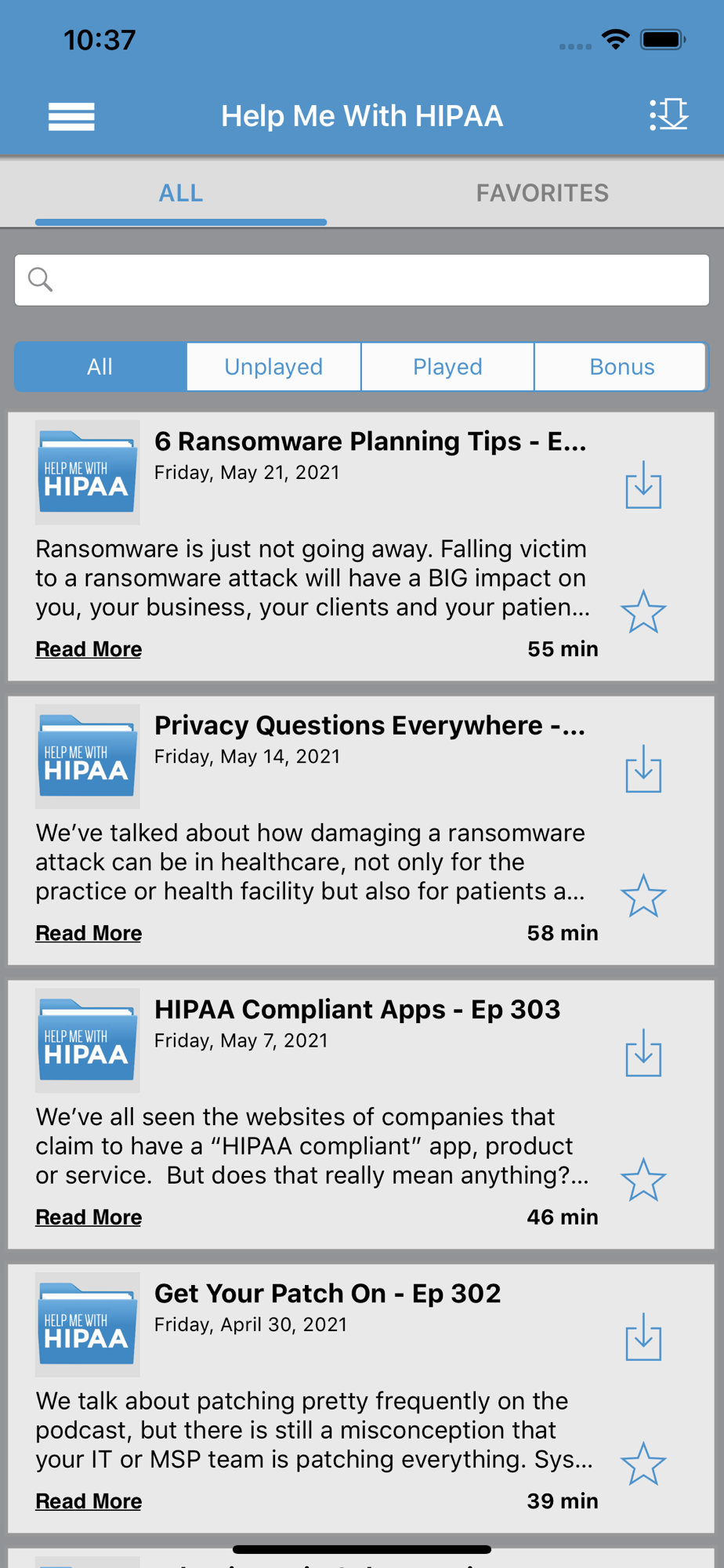 With this app, you are always connected to the latest episodes and the show content. Quickly star episodes and save them to a list so you can easily enjoy them over and over! This app has a Car Mode too! Rotate your phone to display larger playback controls. It is the best and most convenient way to access Help Me With HIPAA, the only free weekly HIPAA training podcast.