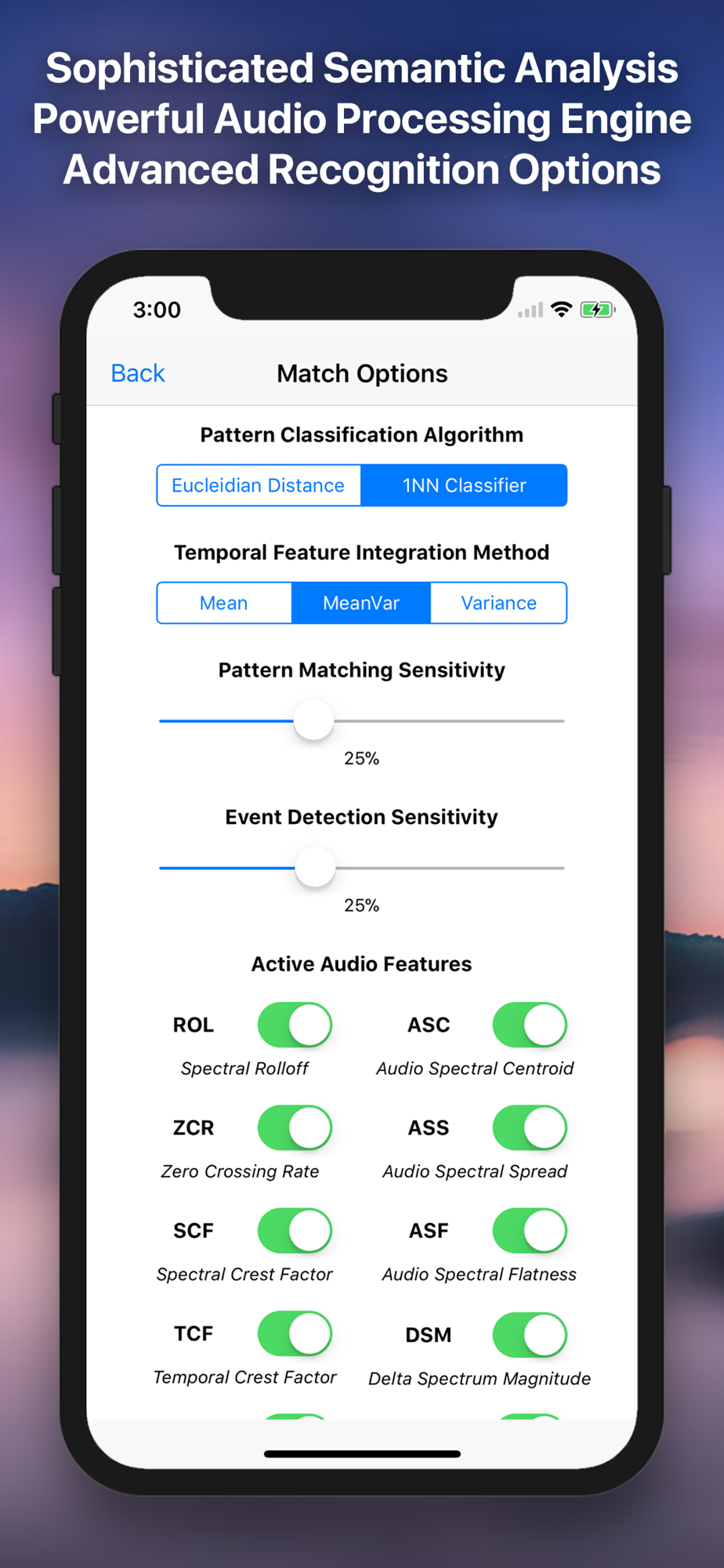 - The application provides long-term audio analysis capabilities, based on semantic audio processing concepts