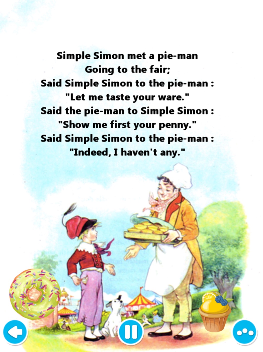 Tons of sing-along nursery rhymes with songs, pictures, stories, narration and animations! Teach your childrens preschool reading skills using this app. Designed to help your children and baby and toddlers learn rhymes in a fun, safe and educational environment. Learning to read will never be SO MUCH FUN now.