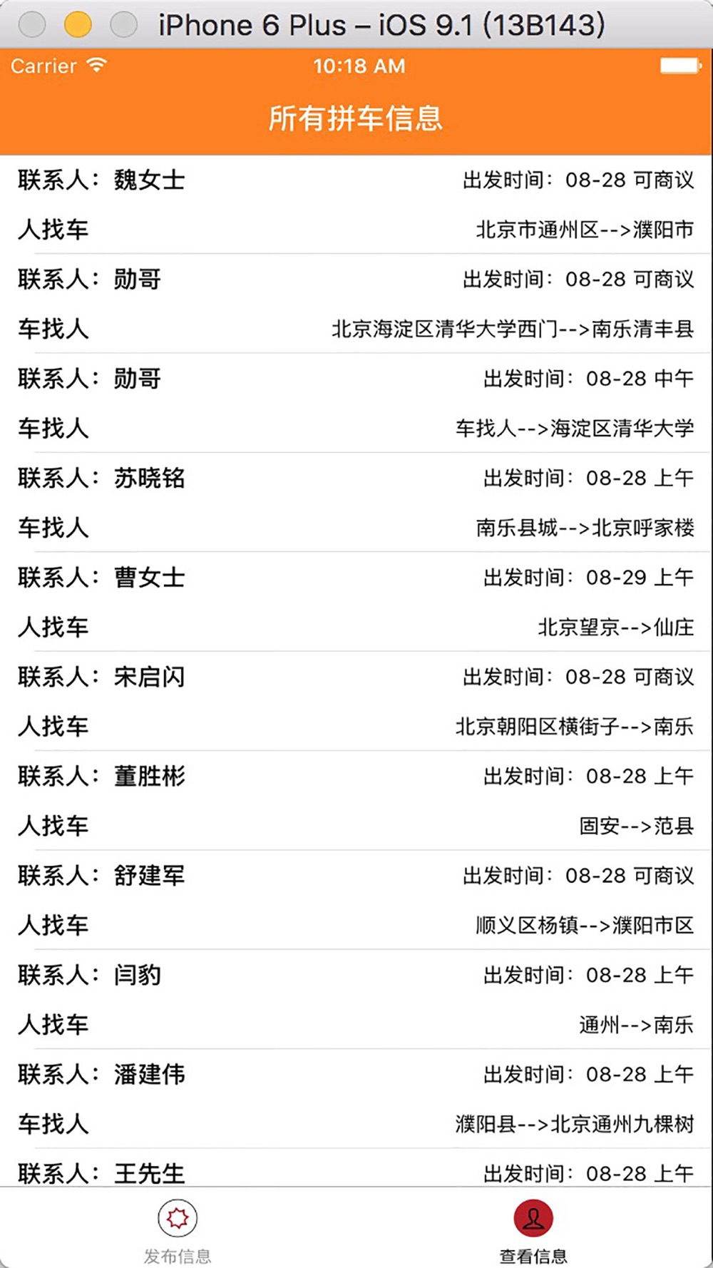 此软件面向用户是濮阳人来往北京的拼车软件,在此软件中用户可以通过此软件进行拼车打车问题。更多地是解决老乡出行的问题!