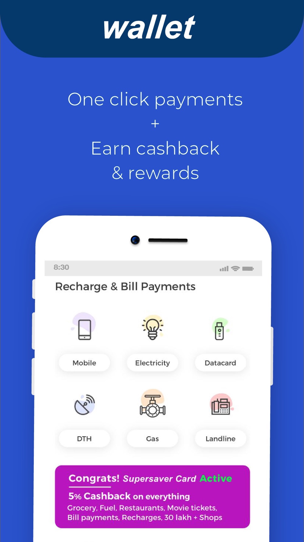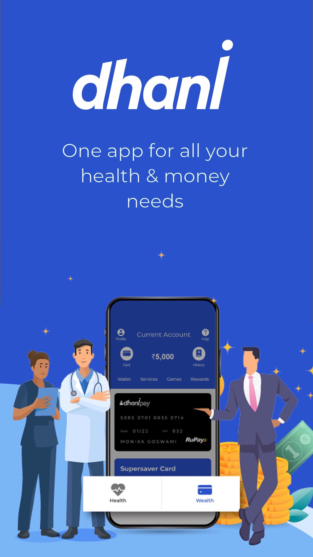 dhani SuperSaver – Get yourself a SuperSaver Card and enjoy maximum return on your spending. Now order medicines, with discounts up to 60%, and get an additional 5% Cashback on all your daily shopping & transactions - including phone recharge, petrol, shopping, utility bills, travel or hotel bookings, and much more! Shop with your dhani Wallet or dhani Pay RuPay card across all online and offline merchants across the country, and get instant cashback daily. Try FREE for 30 days!