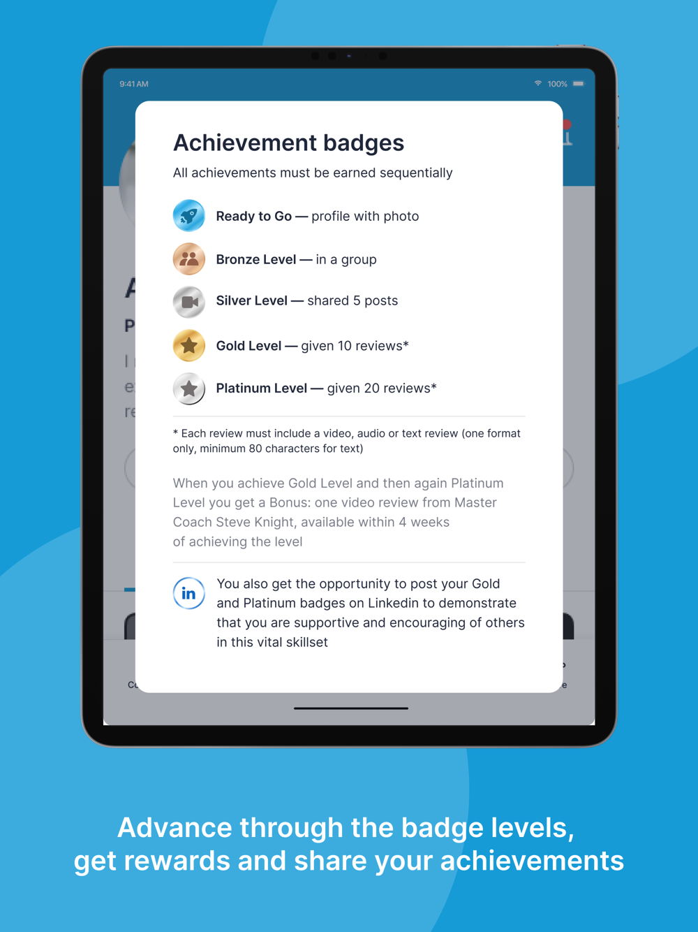 eLearning video content: with 2 hours of interactive, professional video tutorials that guide you through the techniques, methodologies and physical exercises for you to do on a regular basis, the app will get you fit in the arena of communication. Once you become fit, you will always be in a state of ready, just like a top athlete, the disciplined training reaps great results. Being an excellent communicator all the time, in all settings, is our goal and vision for you.
