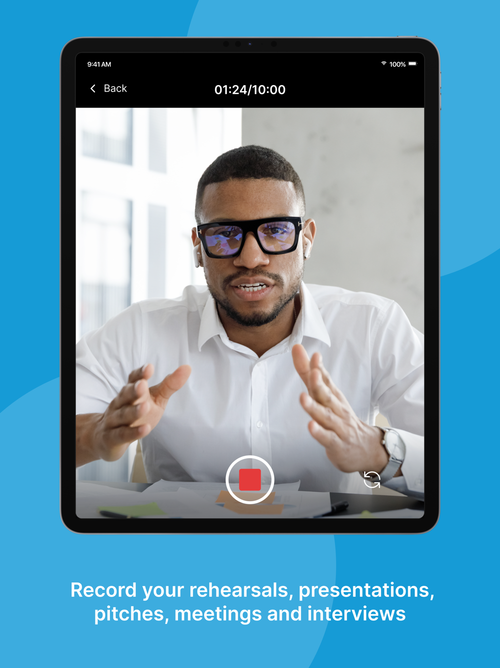 The app is designed to help you prepare and rehearse for presentations, meetings, speeches, job interviews, etc, and receive feedback, in just three simple steps...