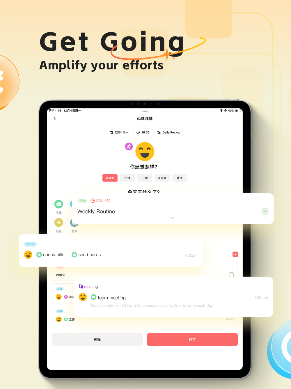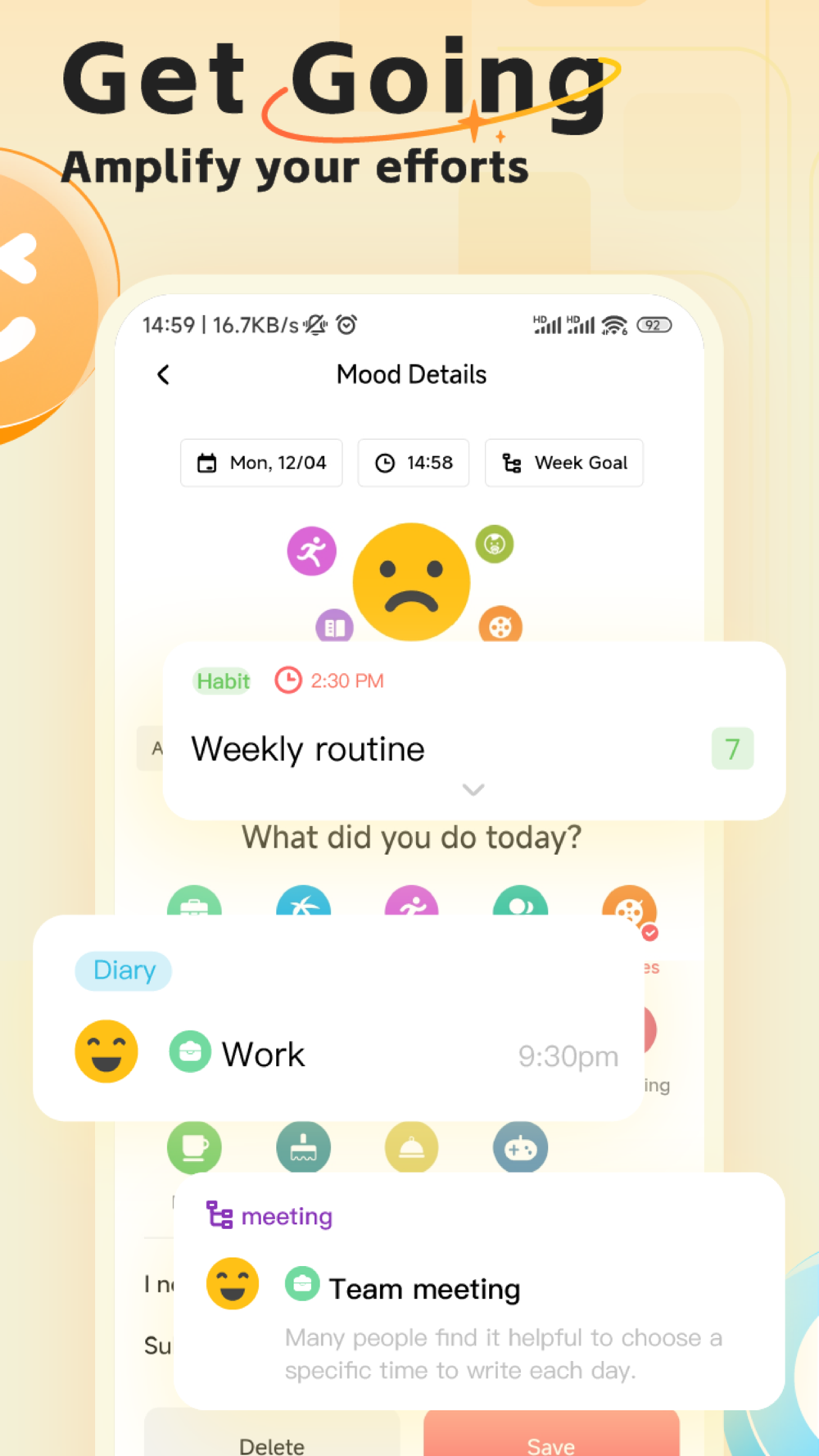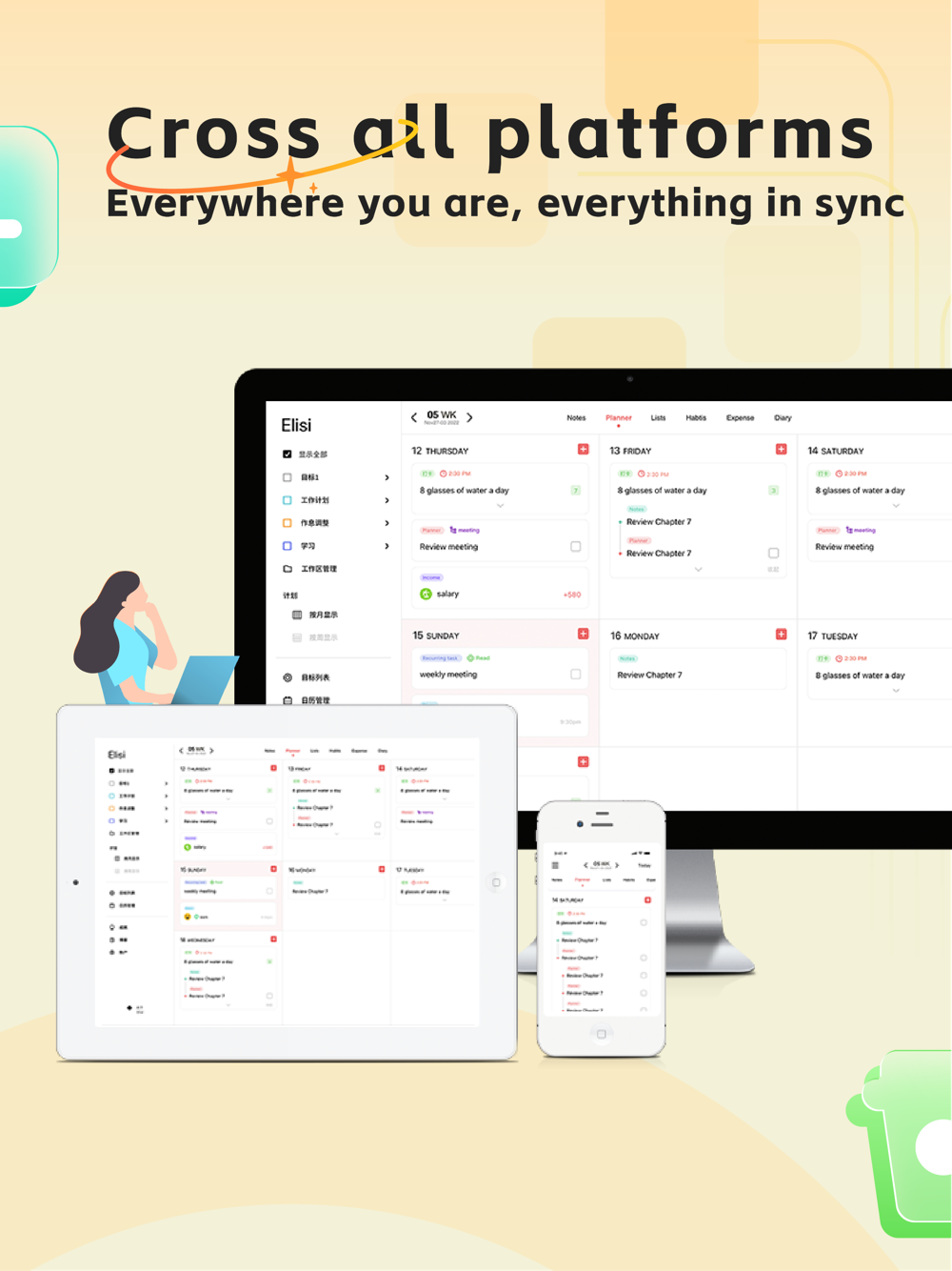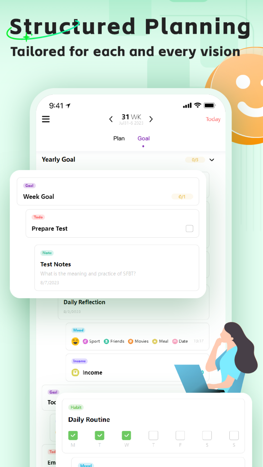 Notes, lists, tasks, habits, moods, expenses, goals, reviews