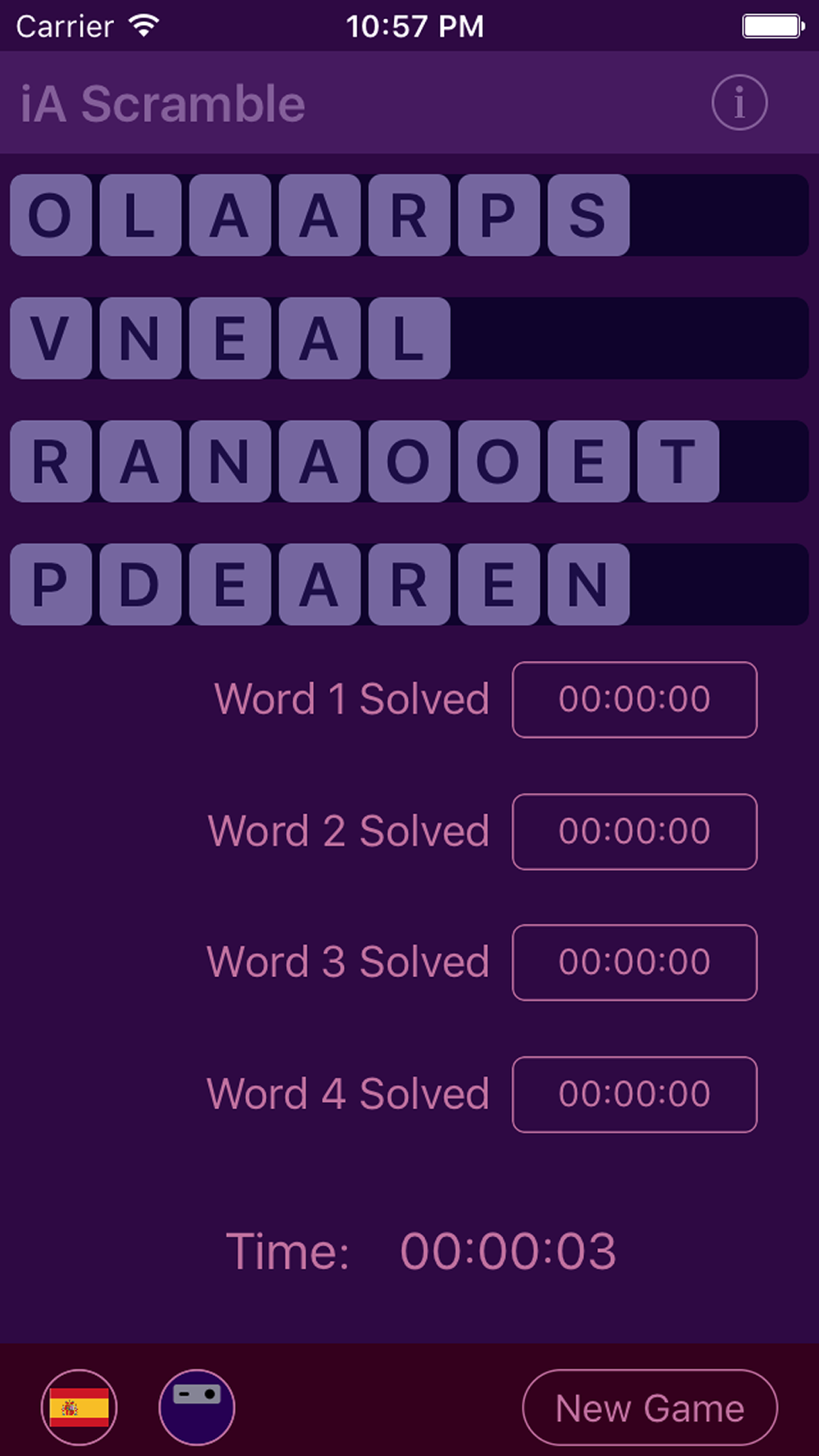 The game play is quite simple. The player is presented with 4 scrambled words. Rearrange the letters to spell the correct word. The player can either tap a letter then tap another to swap their positions. Or with the new gameplay, the player can drag a letter to a new position and see all the other letters slide out of the way and make room! Spell a word but it didn't mark it solved? Try again! That wasn't what the game expected.
