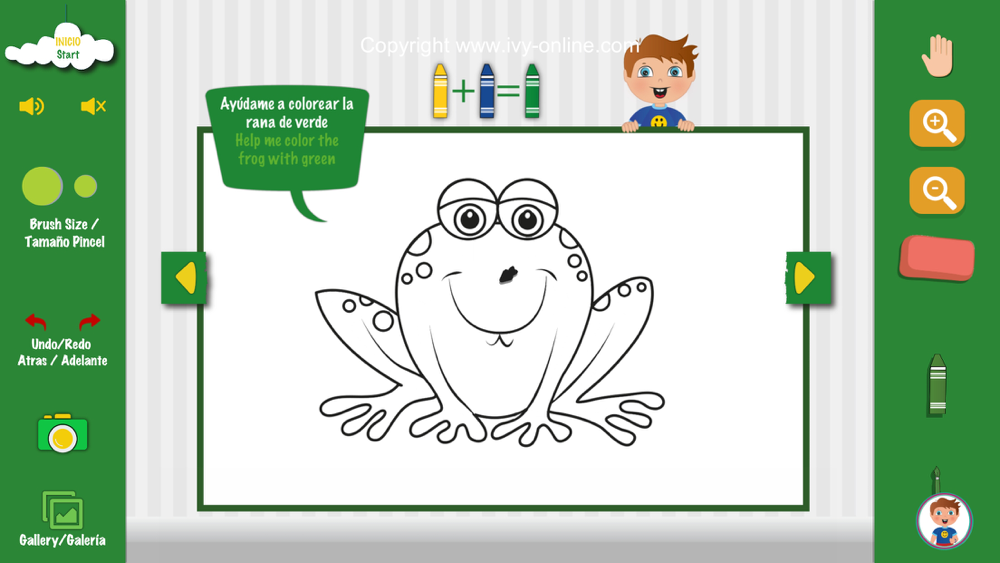 - Press the start button and start learning and playing. Touch the screen, choose the color you want and have fun.