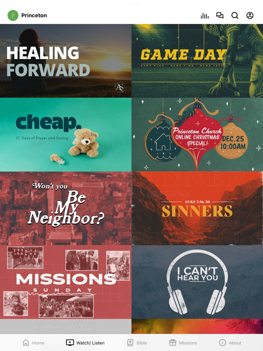This app provides access to sermons, events, giving, and relevant information about Princeton Church. Additionally, you can share information about us via Twitter, Facebook, Instagram, and Email.