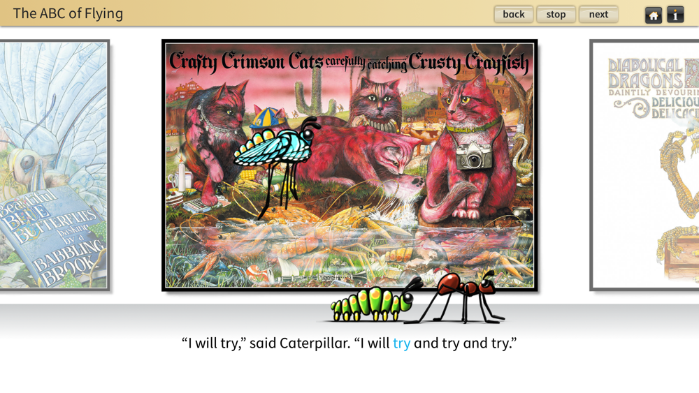 The Graeme Base Educational Suite focuses on the award-winning Animalia. This groundbreaking digital resources takes kids on a learning adventure through the amazing world of Graeme’s enchanting book Animalia, along with a new animated story, The ABC of Flying. This interactive and engaging program embraces all year levels of primary school. It is built around interactive literacy learning tools and provides opportunities for students to develop competence in relation to all learning expectations of the Australian Curriculum: English, Foundation to Year 6.
