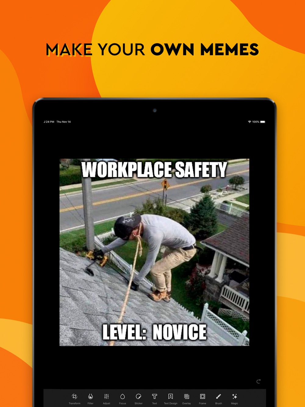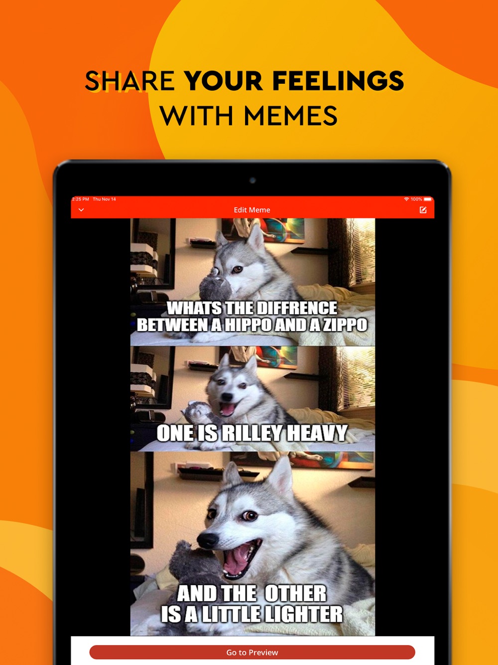 Have all popular meme backgrounds to create your own meme with original content! Also, you will have a sample meme archive which is created already with other people, all popular ones!