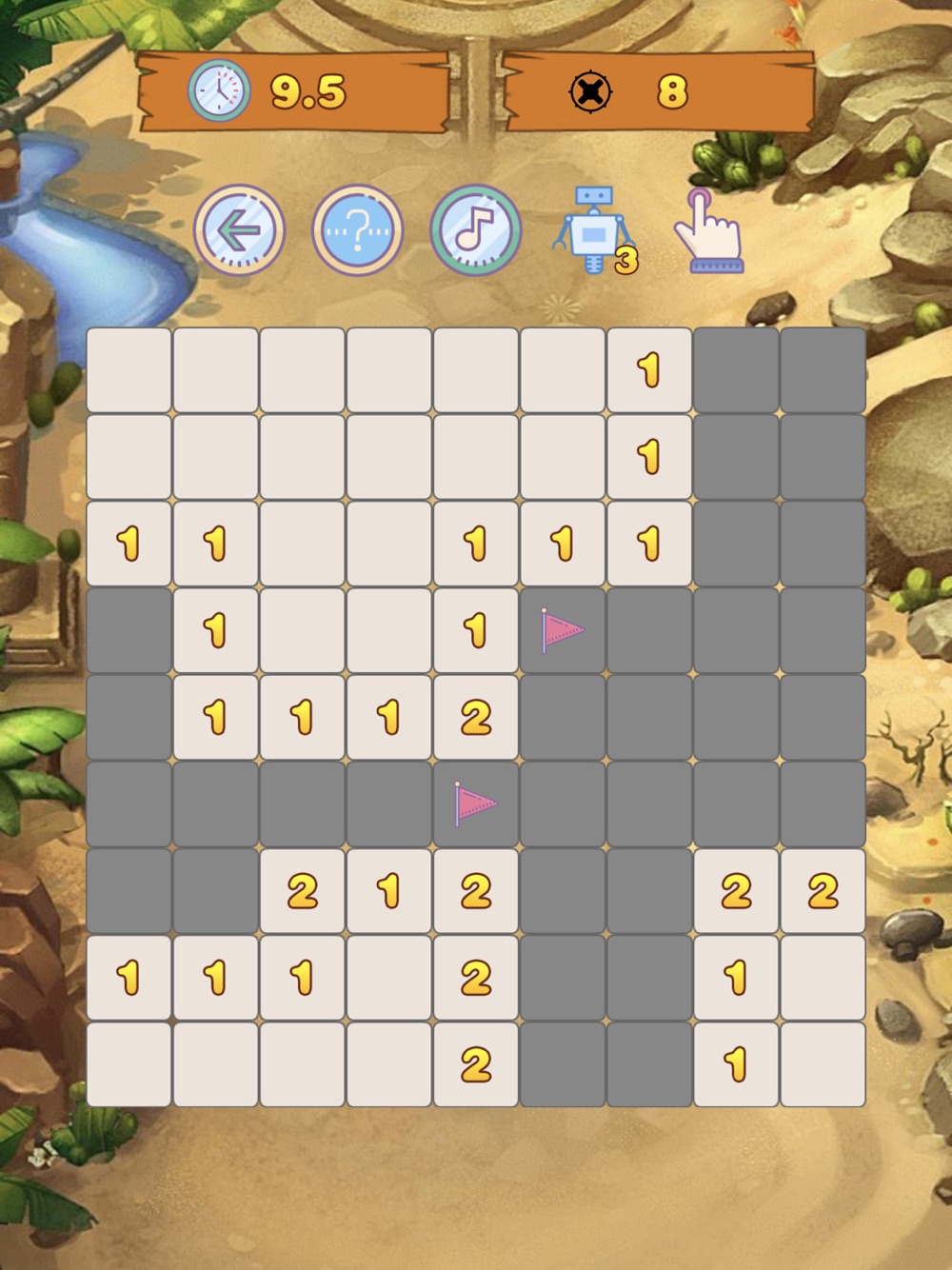 1. In Triangle Mode, each number represents the potential number of mines around 12 grids.