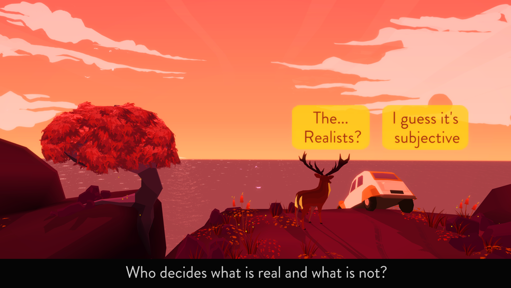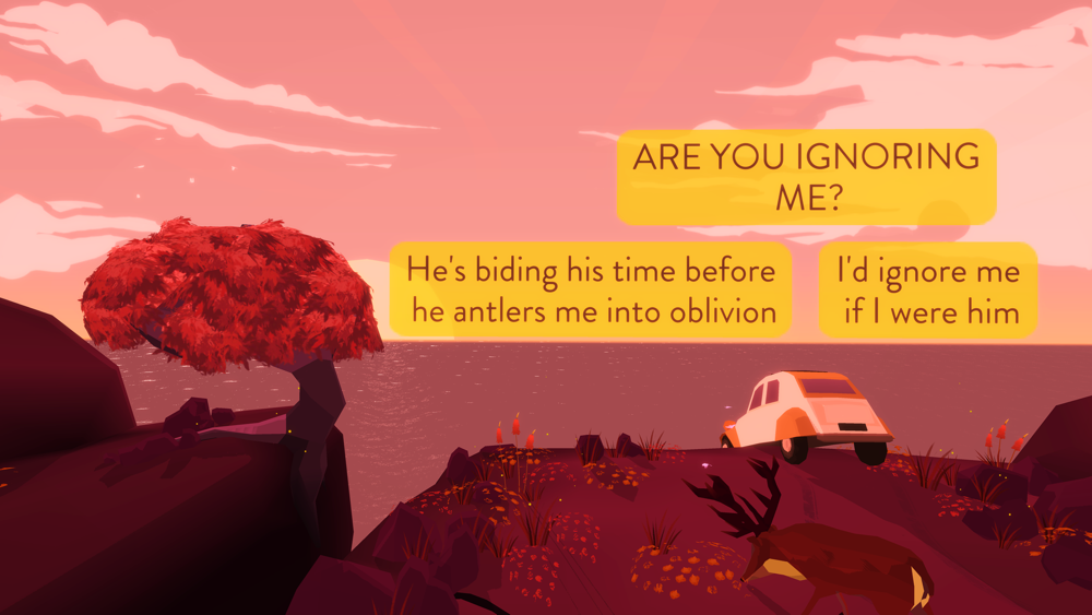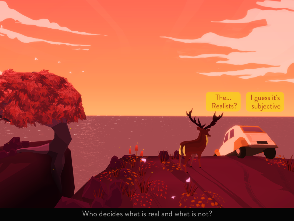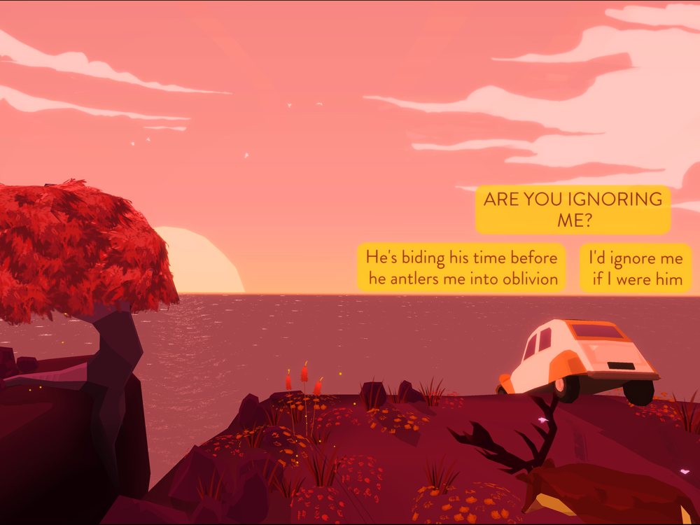 Far from Noise is a story told through dialogue choices. As day fades to night, experience quiet moments of interaction with a variety of creatures and witness the transformative forces of nature as they happen around you. Through conversation with a welcome companion, begin to discover your reasons for being out there, your relationship with the world, life and death, and if you'll see tomorrow.