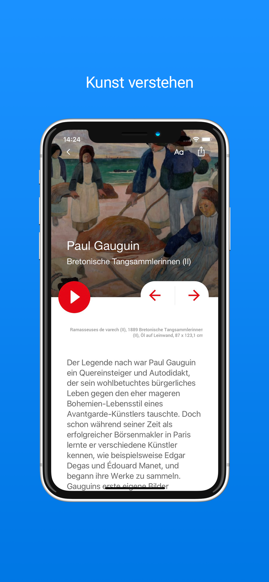 Wählen Sie aus einer der kostenlosen Multimedia-Touren und lassen Sie sich durch die wichtigsten Stationen der Kunstgeschichte führen, entdecken Sie die Highlights der Sammlung oder lassen Sie sich mit der "Discover"-Funktion überraschen!