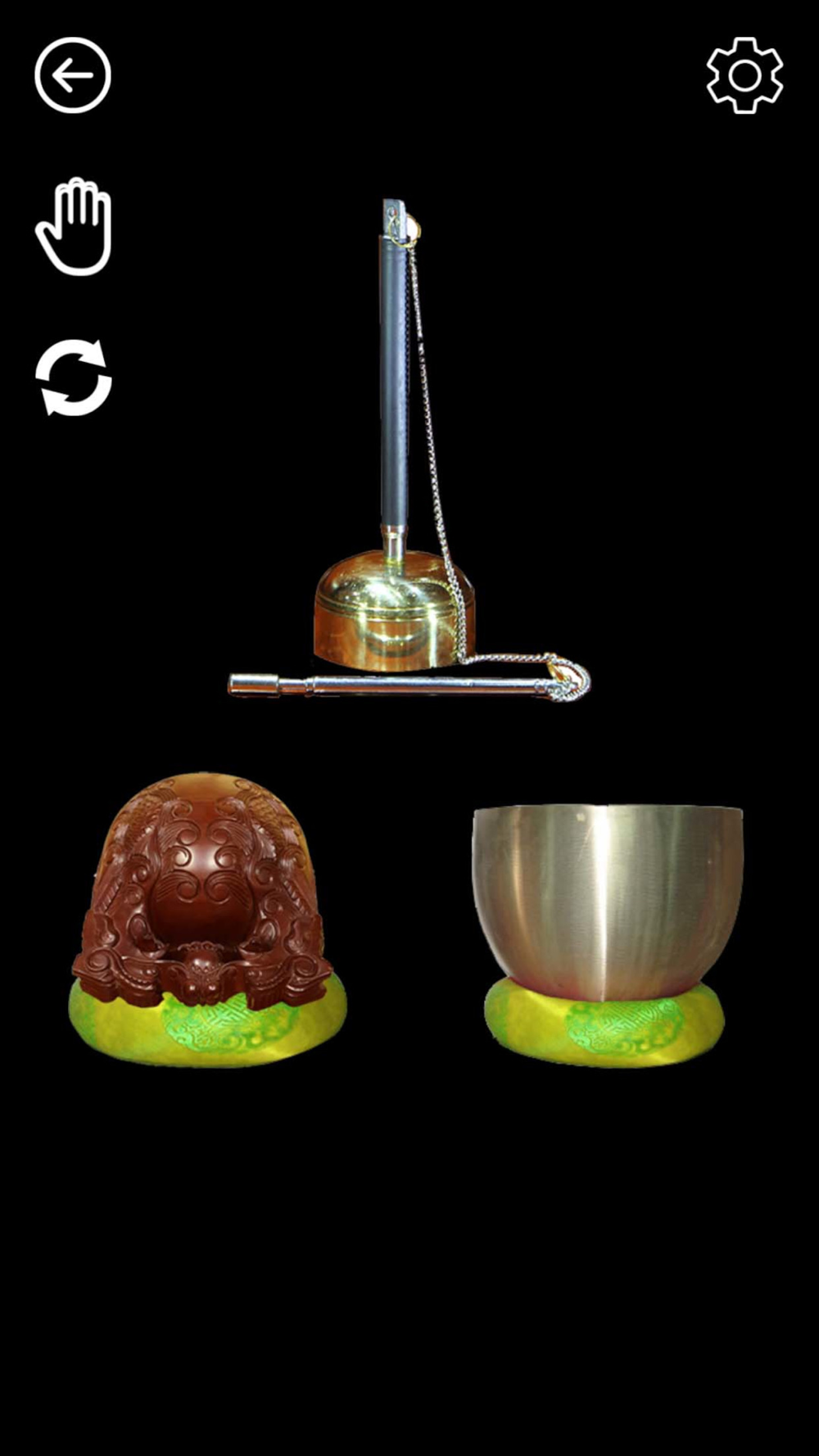 A collection of tools that facilitate prayers in rituals or chanting sutras and mantras. Including prayer beads (mala beads), a wooden fish (Chinese temple block, Mokugyo fish drum) and standing bells.