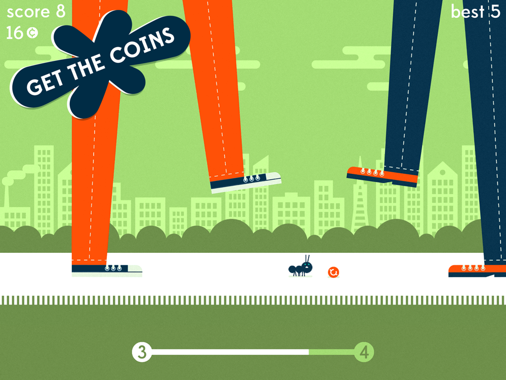 Embark on an epic journey of dodging feet and collecting coins. Get a bugs eye view of the world as you hustle and bustle to survive!