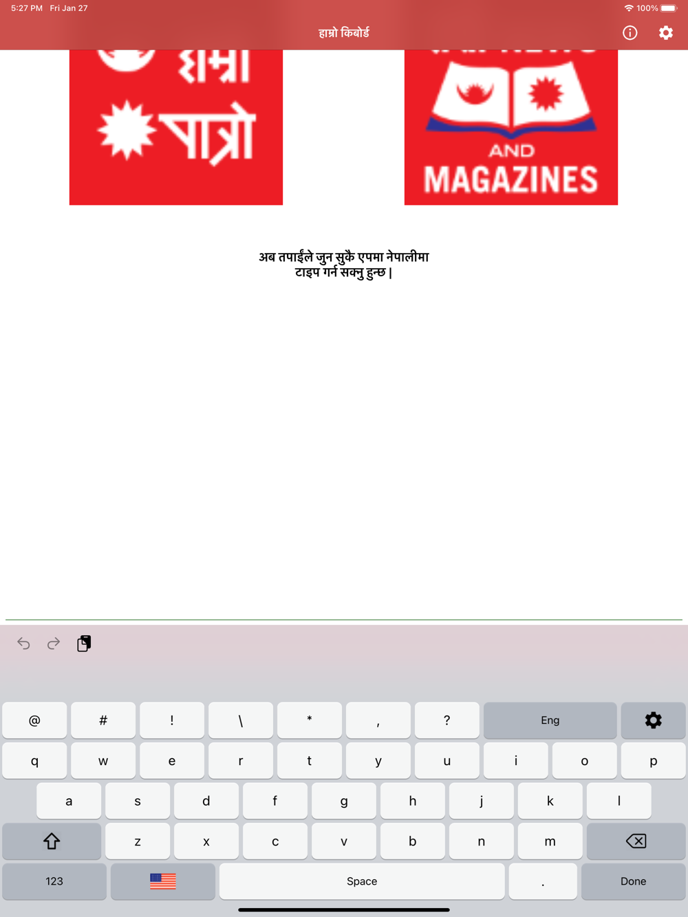 Hamro Keyboard is a Nepali keyboard for all of us who love Nepali language. You can use this keyboard to write Nepali text in any app. No need to copy and paste.