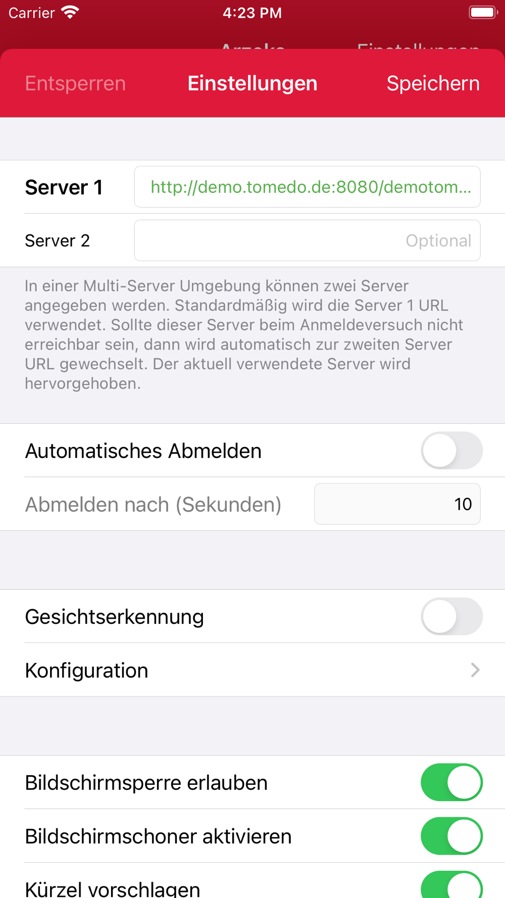 Richten Sie dazu einfach die Gesichtserkennung für jeden Nutzer in tomedo® ein. Anschließend gehen Sie in die Einstellungen von Arzeko für iOS und aktivieren die Gesichtserkennung. Ab sofort reicht ein kurzer Blick in die Kamera und die Stechuhr des jeweiligen Nutzers wird angezeigt. Praktische Nebenfunktion: Bei aktivierter Gesichtserkennung kann die App auch als Spiegel verwendet werden.