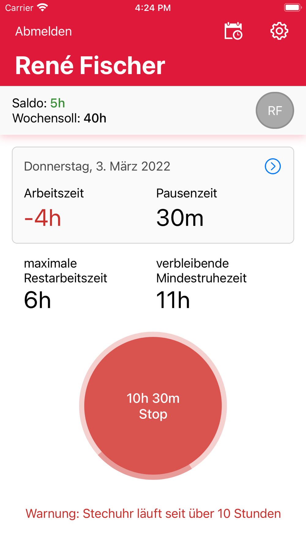 Mit dieser iOS-App können Sie und Ihre Praxis-Mitarbeiter Ihre Anfangs- und Endzeiten digital festhalten.