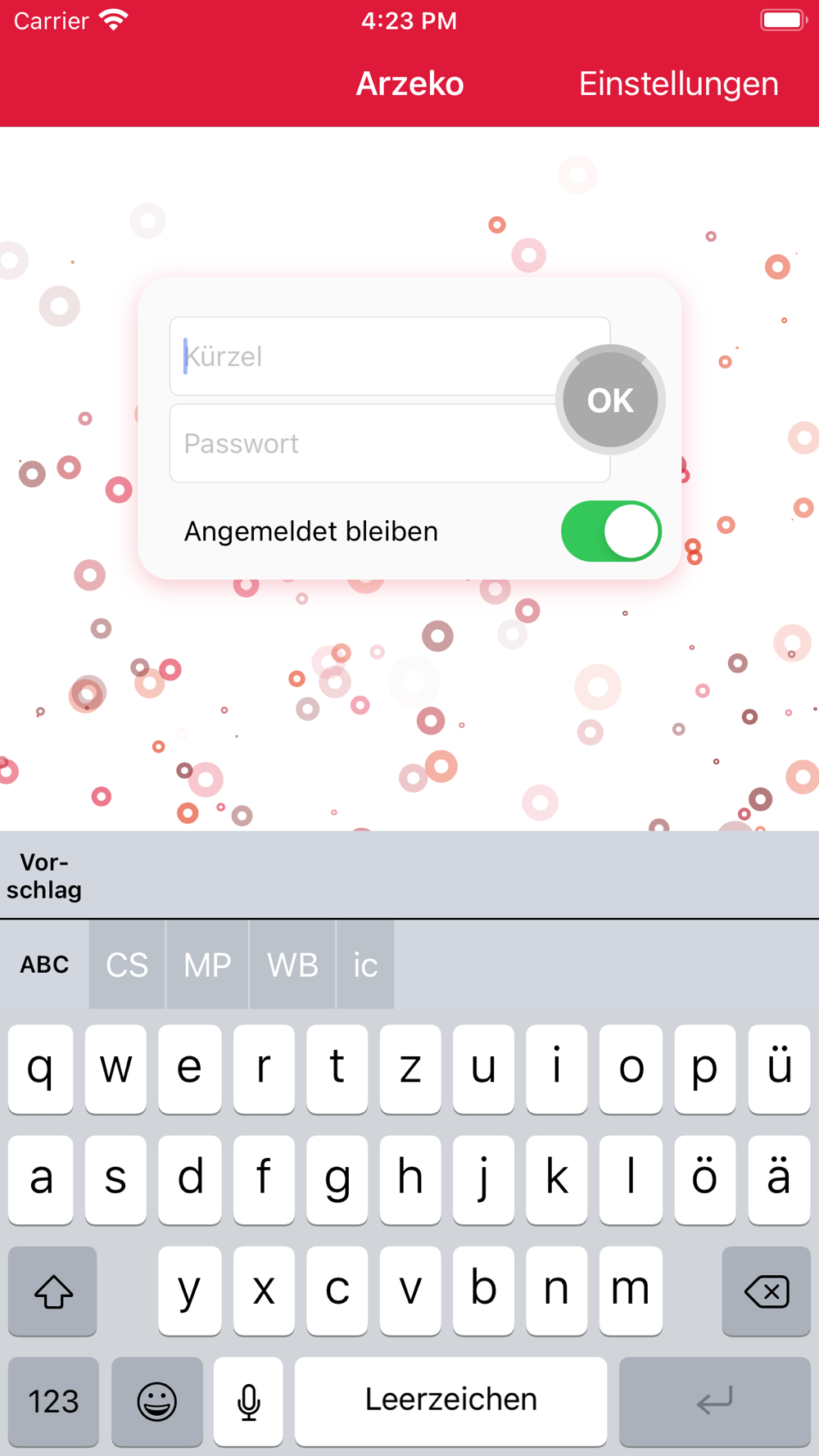 Die App synchronisiert die Zeiten dann mit der Arzeko-Datenbank auf Ihrem tomedo®-Server und lernt: Um die Nutzung zu vereinfachen schlägt die App z.B. die Nutzerkürzel vor, die in der jüngeren Vergangenheit zu einer ähnlichen Uhrzeit eingestempelt haben.