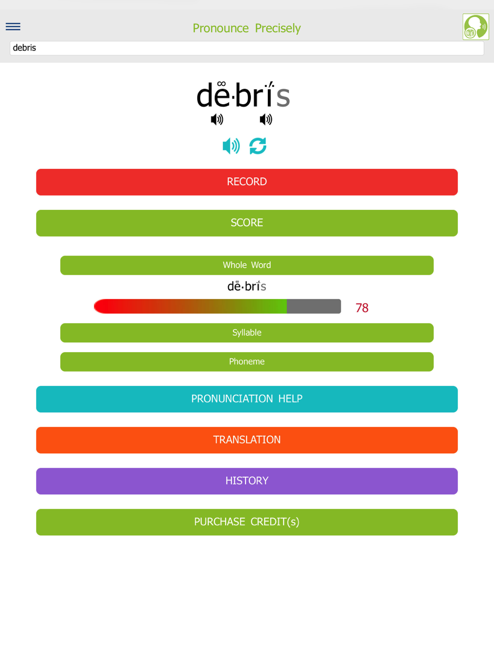 - Receive instant feedback on your pronunciation for the whole word, for each syllable, and for each individual sound (phoneme) in the word