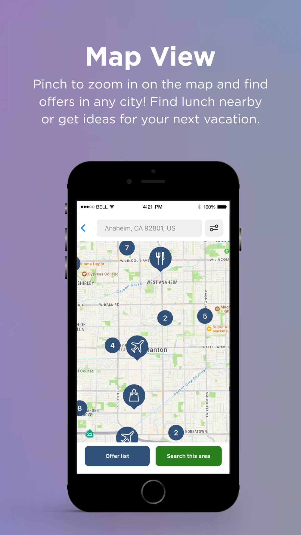 Show and save mobile coupons provide instant in-store discounts at nearby restaurants and retailers.