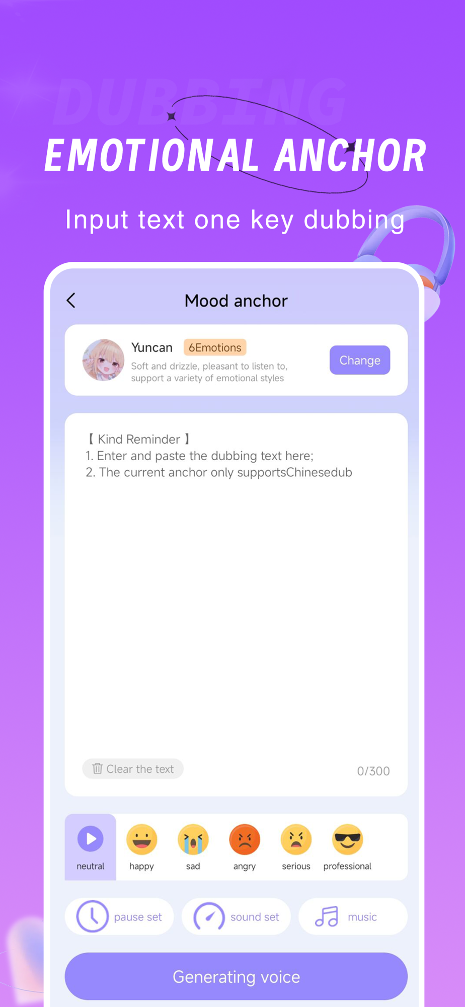 1. intelligent dubbing: a variety of popular dubbing anchors for you to choose, Mandarin, dialect, English, Japanese, Korean and so on thousands of sound colors, input text, choose dubbing anchors, add background music, one click synthesis of their own desired dubbing, simple and efficient.