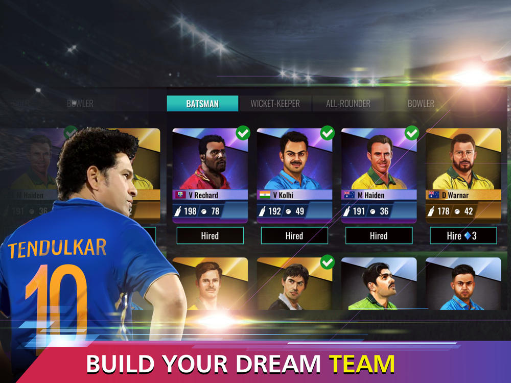 Introducing Top 3D Mobile Cricket Game. Enjoy high-performance graphics and realistic motion-captured animations of criket in this sports game. Relive some of the most iconic moments from criket history in console-quality play. Experience top IPL T20 cricket battles while recreating master strokes of the Cricket God. Featuring multiple modes of play in this sports games - One-days, Tests, IPL T20, domestic, Premier League, World Cup criket– this epic cricket game is all geared up to bring you endless entertainment.