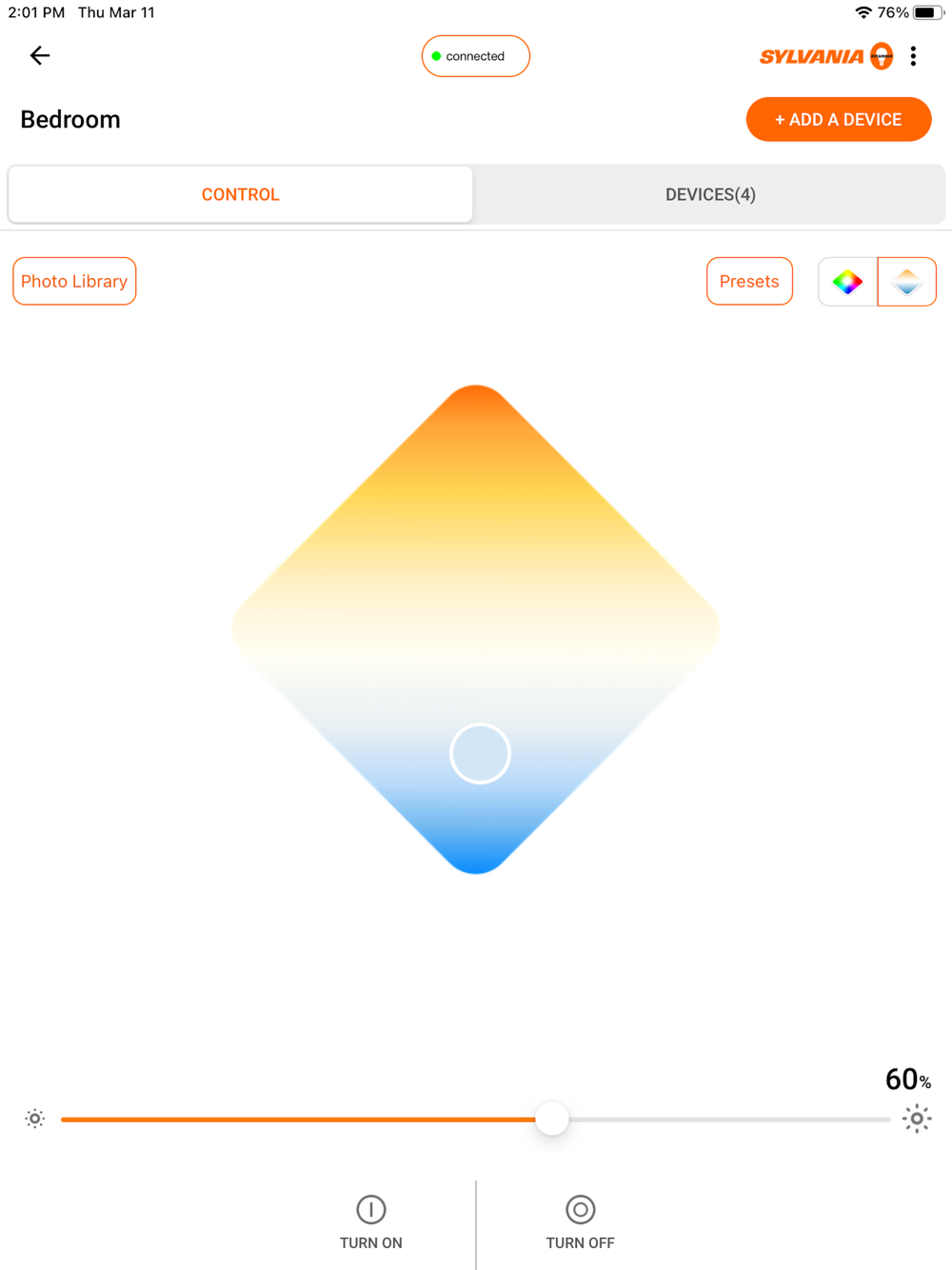 The SYLVANIA Smart Home app allows Apple HomeKit users to easily update their SYLVANIA SMART+ accessories to the latest firmware version to incorporate new features and improvements as they become available. Setting up and upgrading your SYLVANIA SMART+ HomeKit-enabled accessories is quick and easy, with no hub required for use. After pairing your SMART+ accessories to HomeKit, use this app to check for firmware updates. Your paired SMART+ HomeKit accessories can be viewed within the app and a message will be displayed next to the accessory if an update is available. Select the accessory to update and the process will automatically begin.
