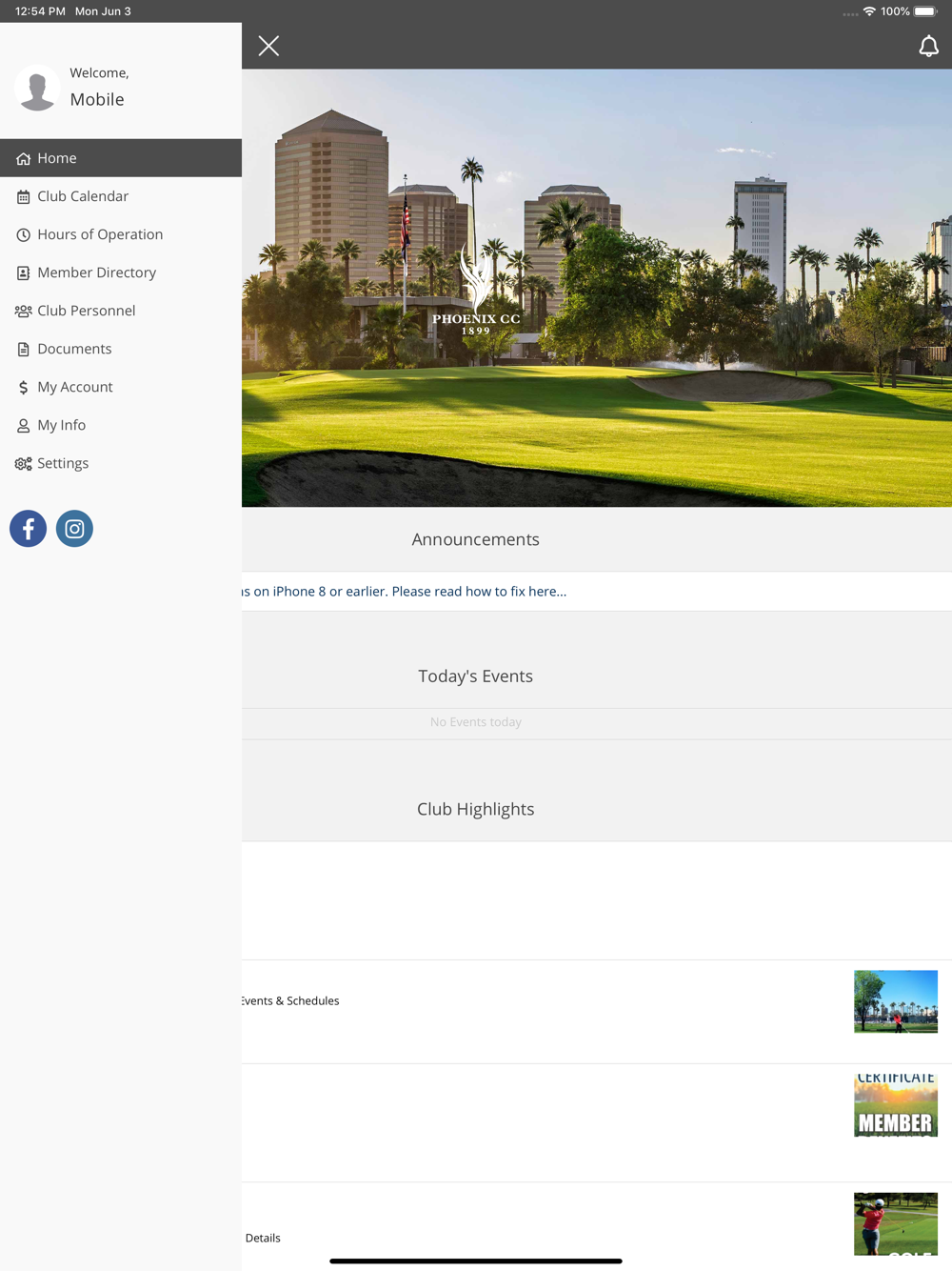 Everything you love about Phoenix Country Club’s website, now in a native, easy-to-use mobile app! The time-saving tools you use online are now even more convenient; connect with other members, register for events, make a tee time, reserve a court and get up-to-the-minute updates directly from the club... all in real-time. Built with communication at its core, it’s your membership toolbox... anytime, anywhere!