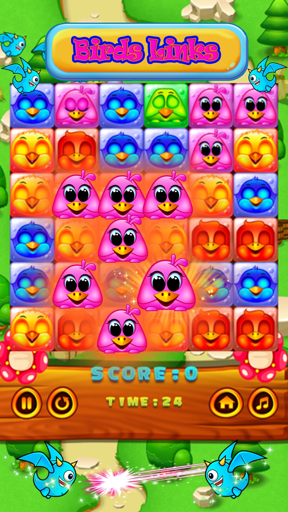- Drag the Birds, connect the birds three or more to clear birds blast and earn points.