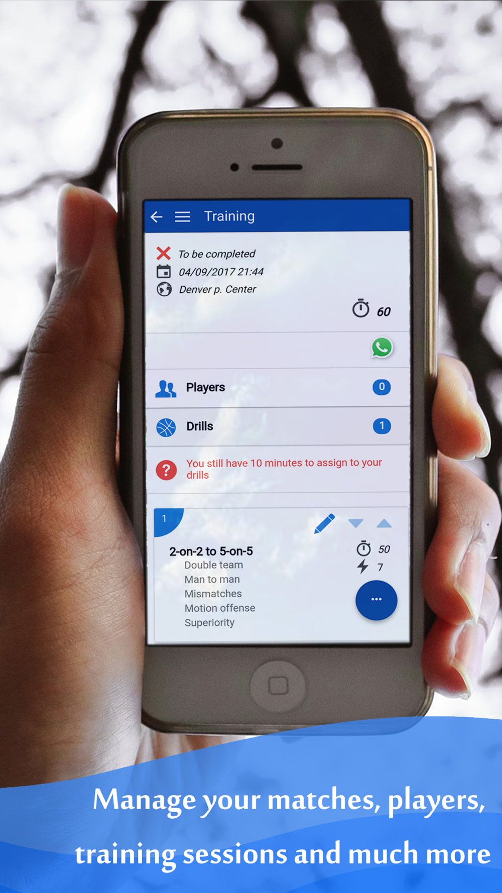 - Create training sessions and record your players' attendance, using your own drills, or with the predefined drills from our complete database.
