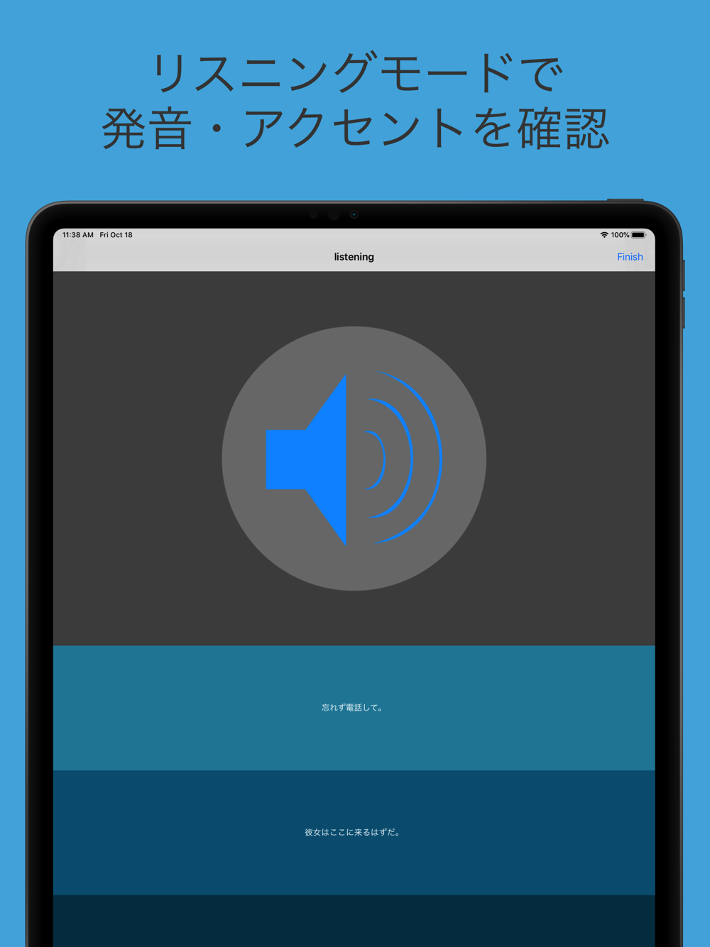 当アプリは全く英語が聞き取れない学習者がネイティブの会話を理解できるようになるために、レベル別に問題を配置、基礎的なリスニング力が身につくよう、独自のメソッドでアプリを作成いたしました。