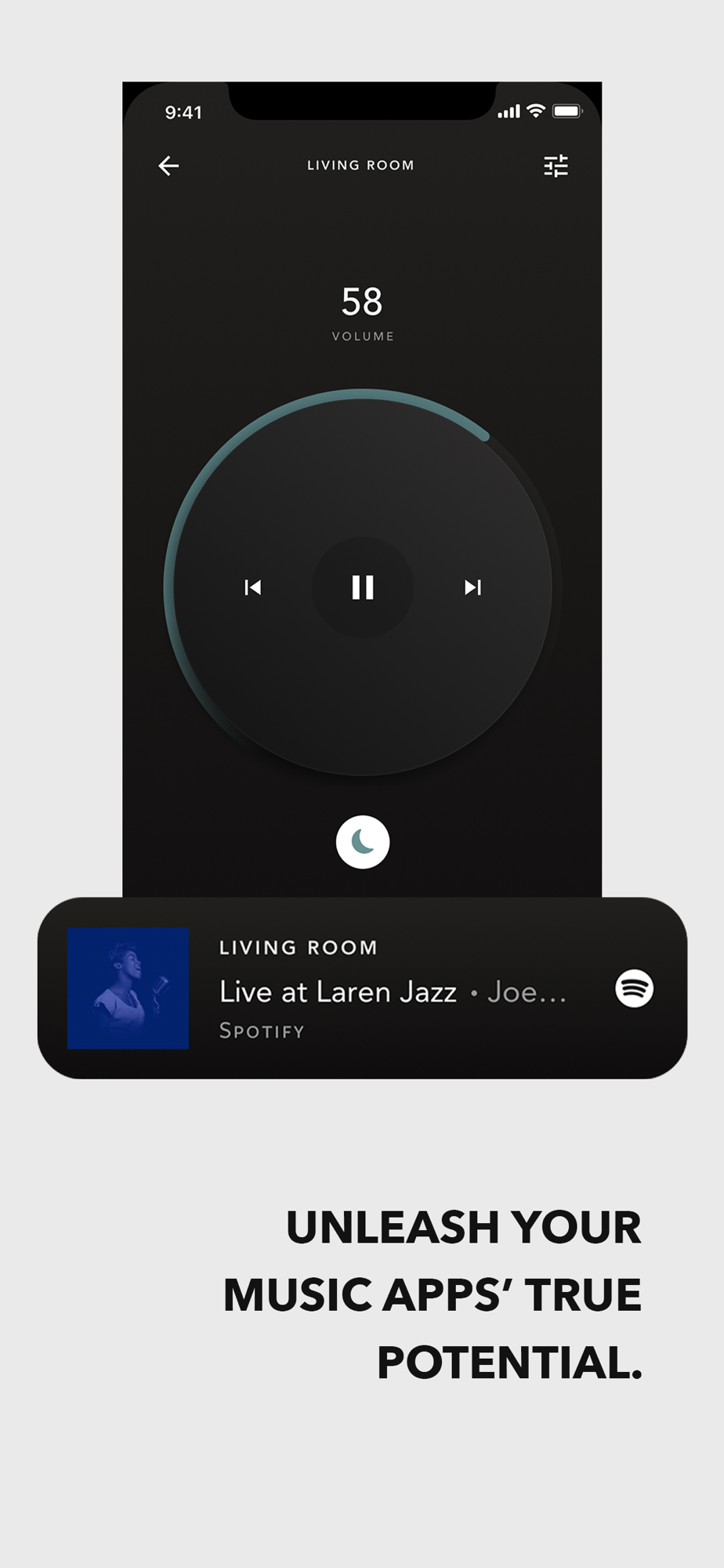 All of your speaker's potential is in your hands. Control the volume with extreme precision, no matter where you are in the room. In a multiroom setup, adjust the volume in different rooms, separately or simultaneously.