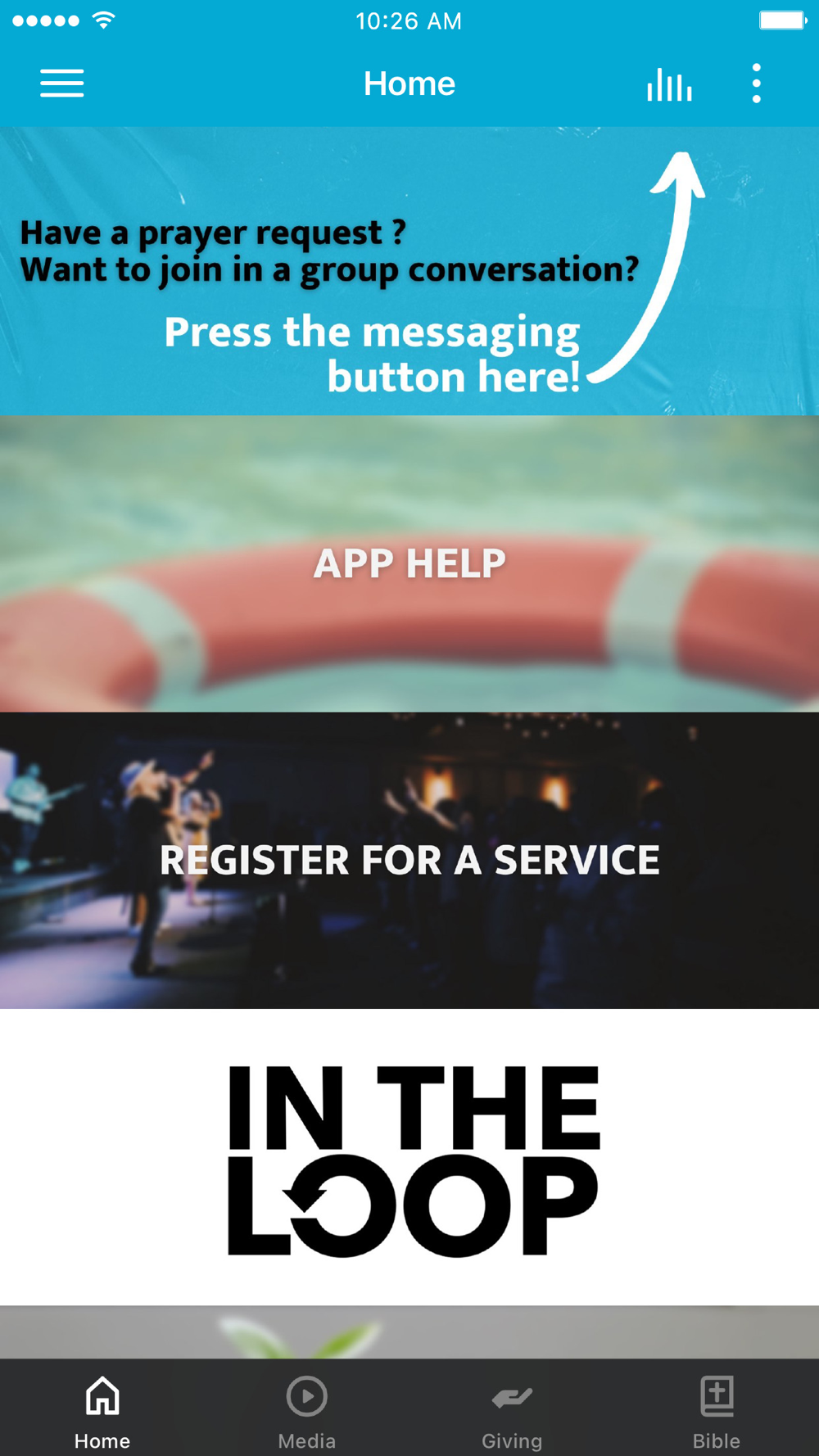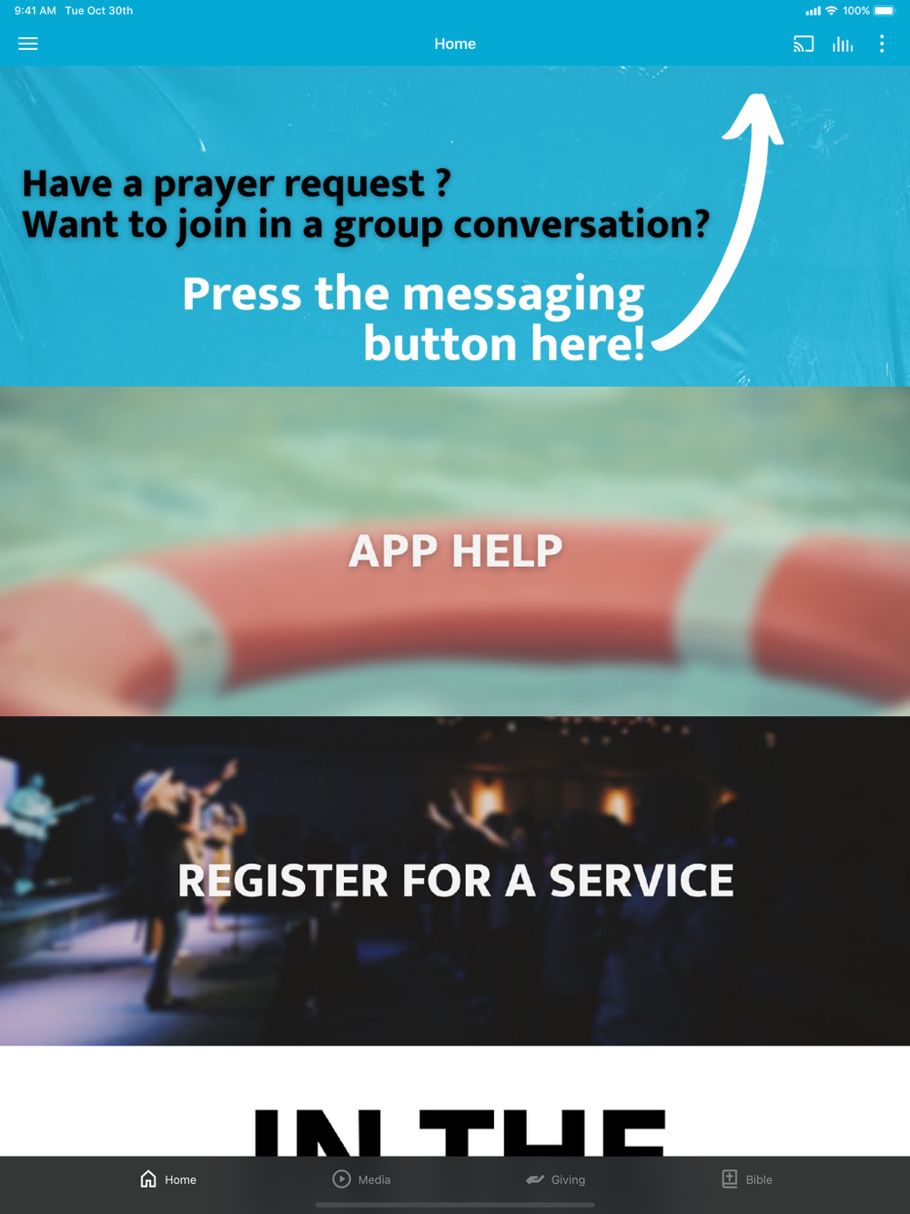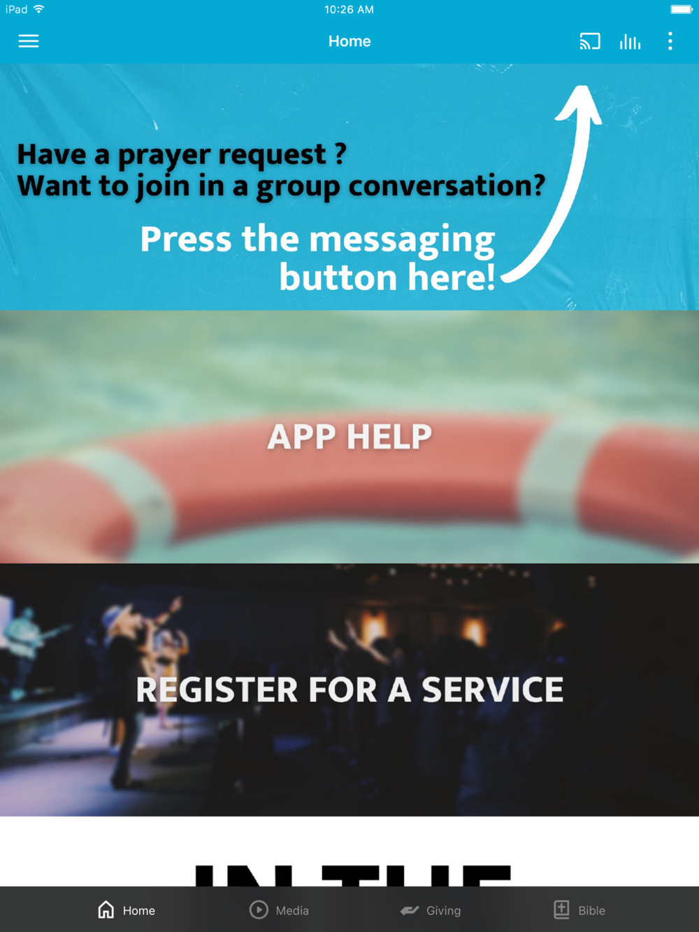 You can submit prayer requests, see upcoming events, give, chat with your serving team or small group, and even watch our services and teaching content online. We hope you find this app helpful and that it makes your church community experience even better.