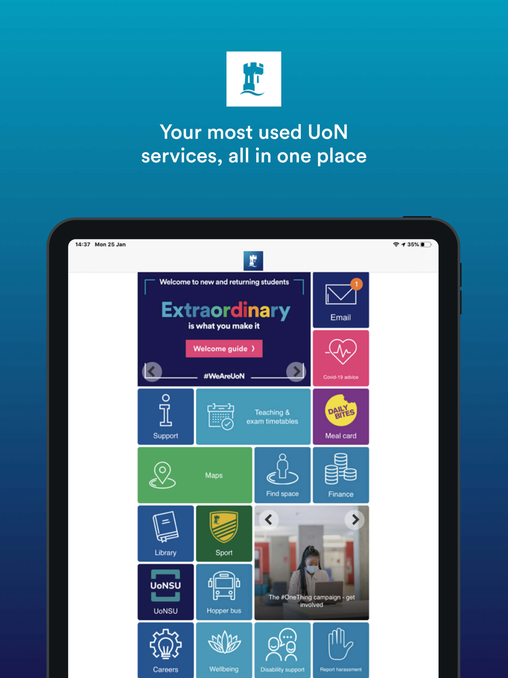 We know that everyone's experience at University is different, which is why we've given you the option to tailor the app to your own preferences; simply drag the tiles around the screen so that you can prioritise your favourite features, or even remove tiles that you don’t use.